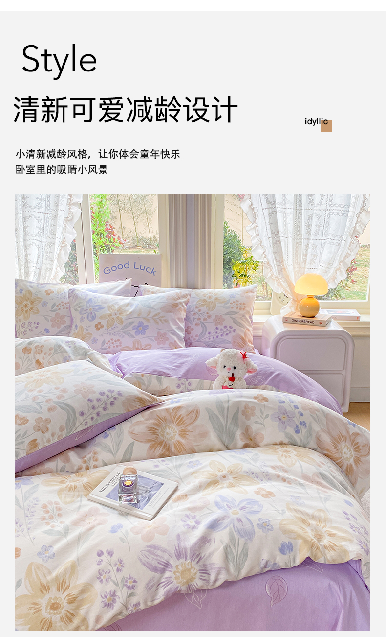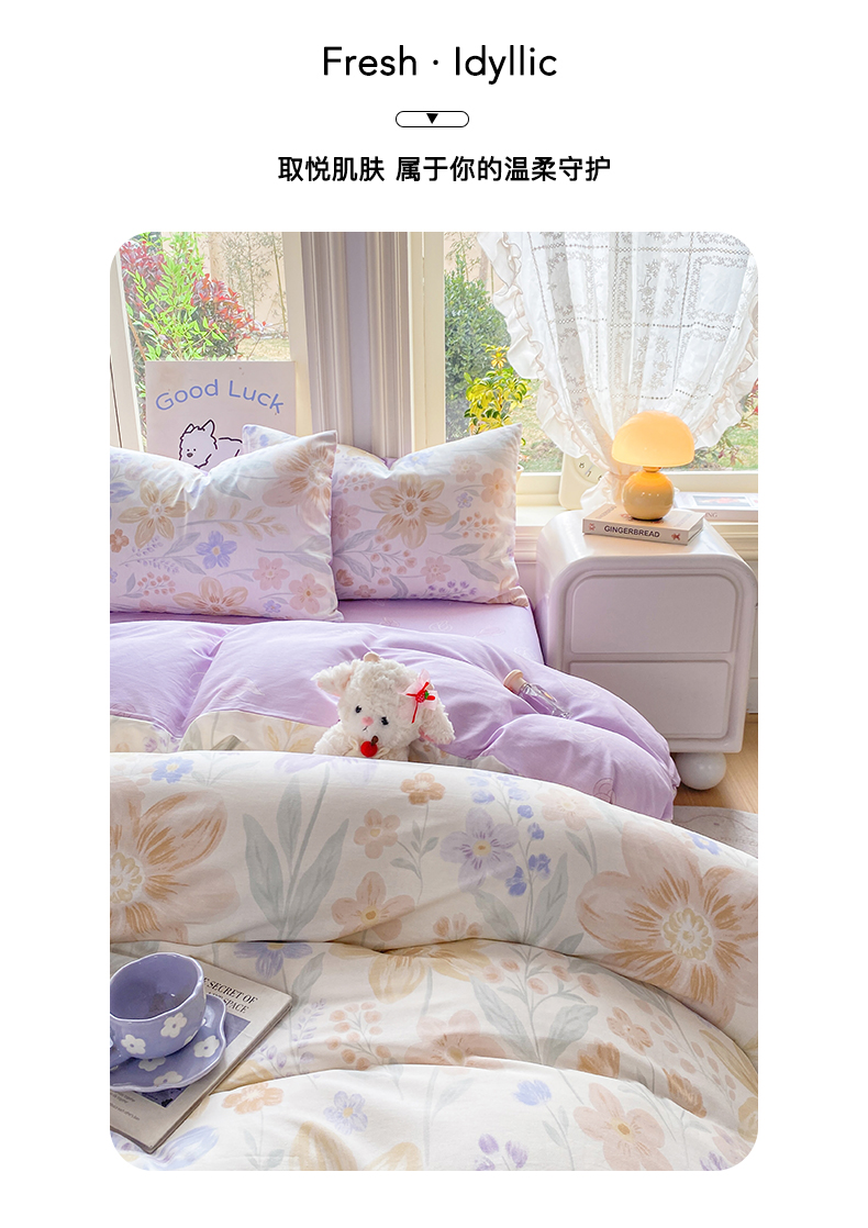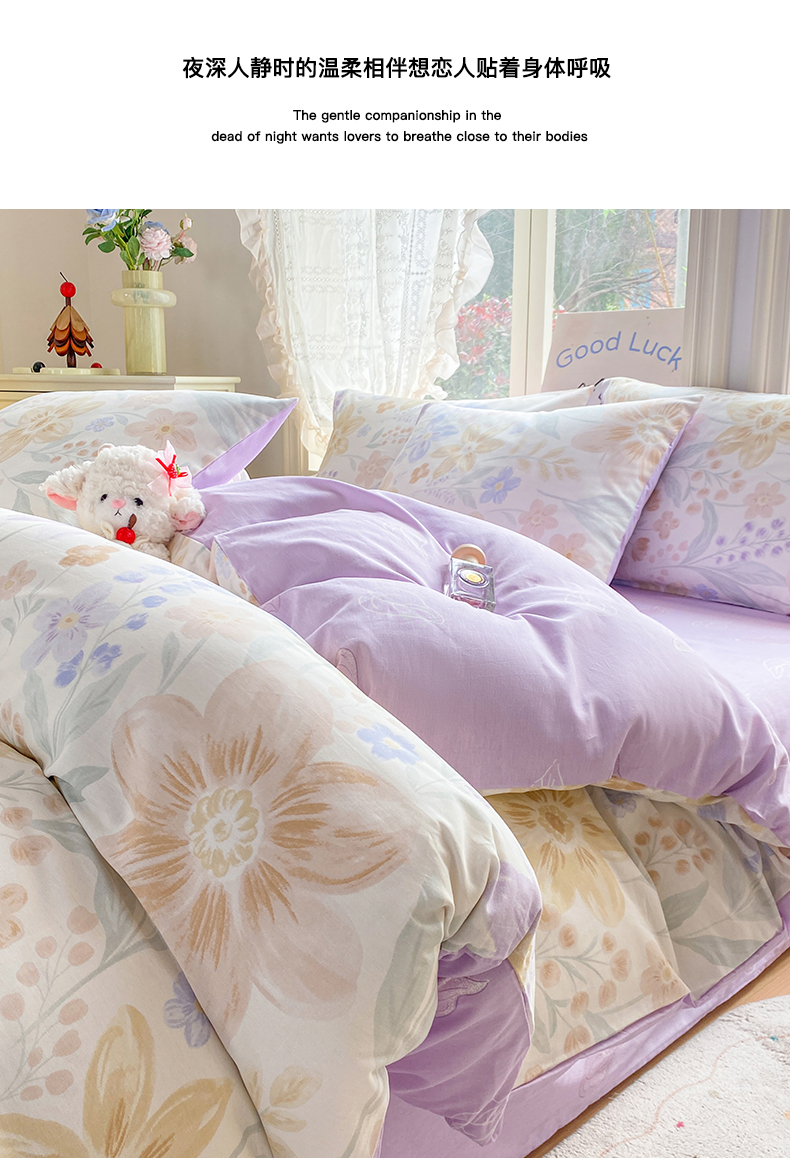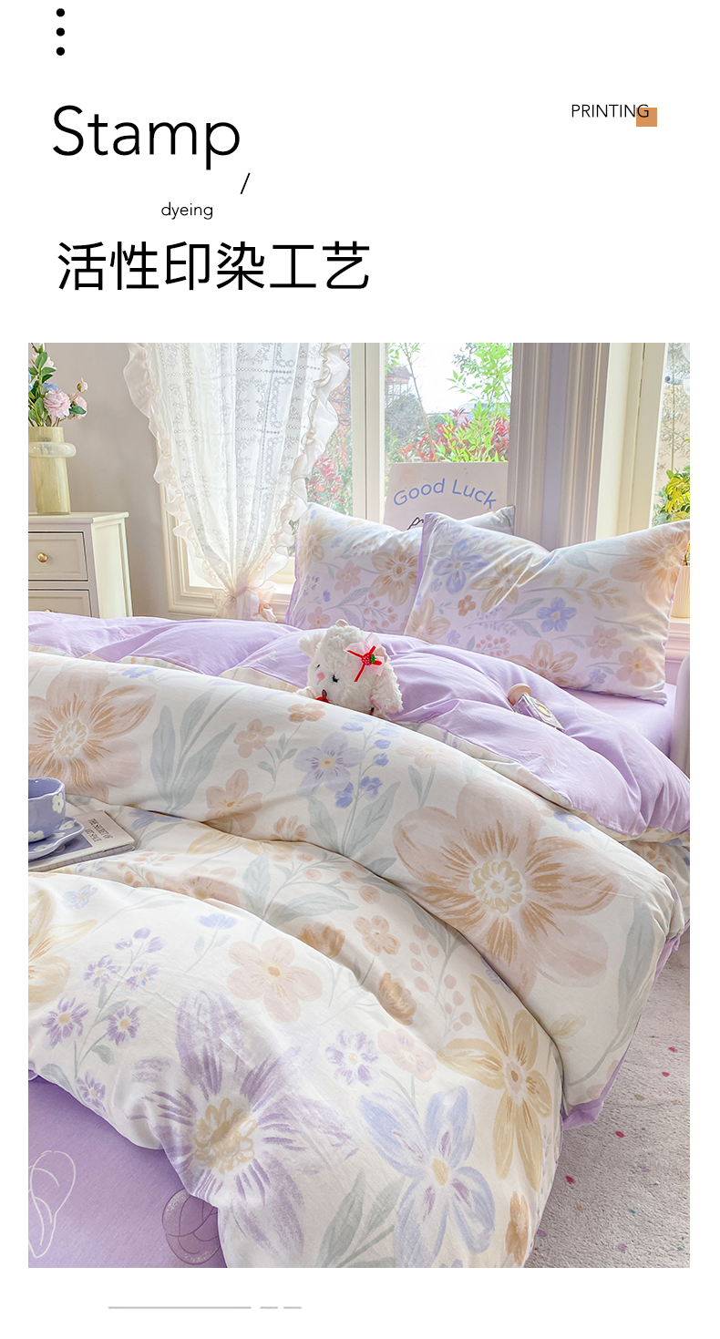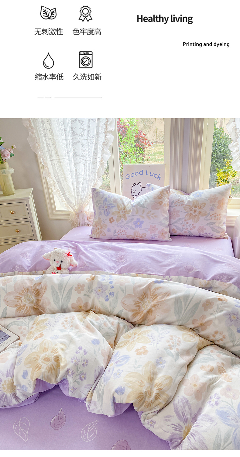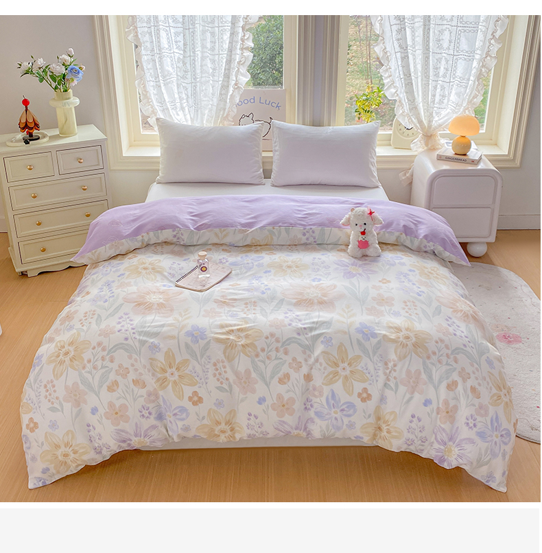 商品名称:黑马家居 2026新款13070全棉印花小清新卡通花卉单品被套系列 堇紫盈香