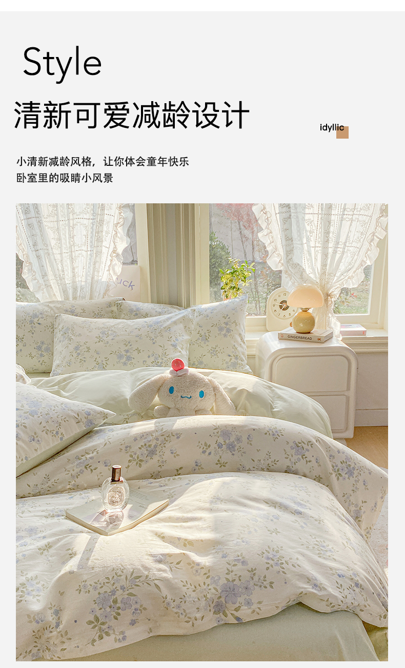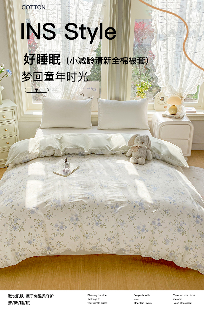 商品名称:黑马家居 2026新款13070全棉印花小清新卡通花卉单品被套系列 汀兰点素