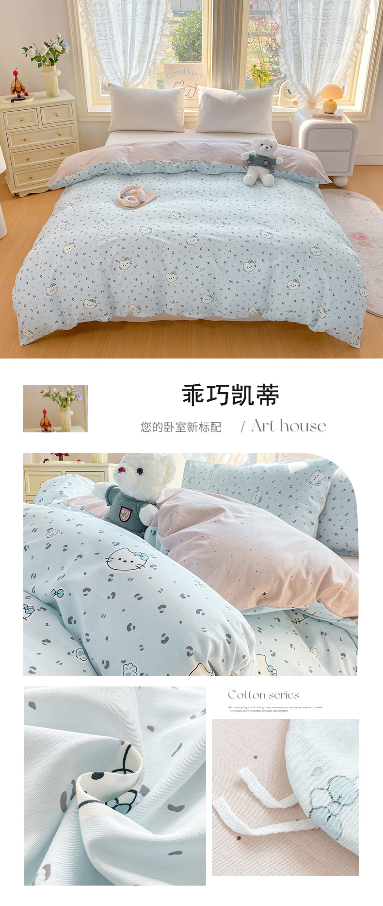 (总)黑马家居 2026新款13070全棉印花小清新卡通花卉四件套系列,饼干熊,彩绘小狗,丛林乐园,乖巧凯蒂,堇紫盈香,凯蒂公主,恐龙派对,懒猫猫,马上有钱,魔法星星人,墨蝶,牛油果,泡泡熊,塞浦路斯,汀兰点素,晚安星星人,星星宝贝,幸运叶,宇航员,紫韶