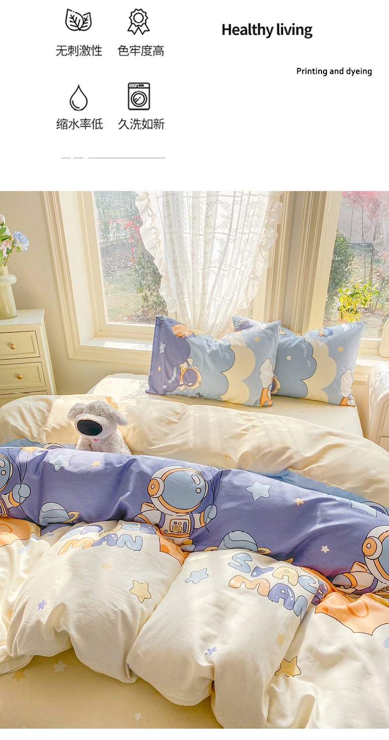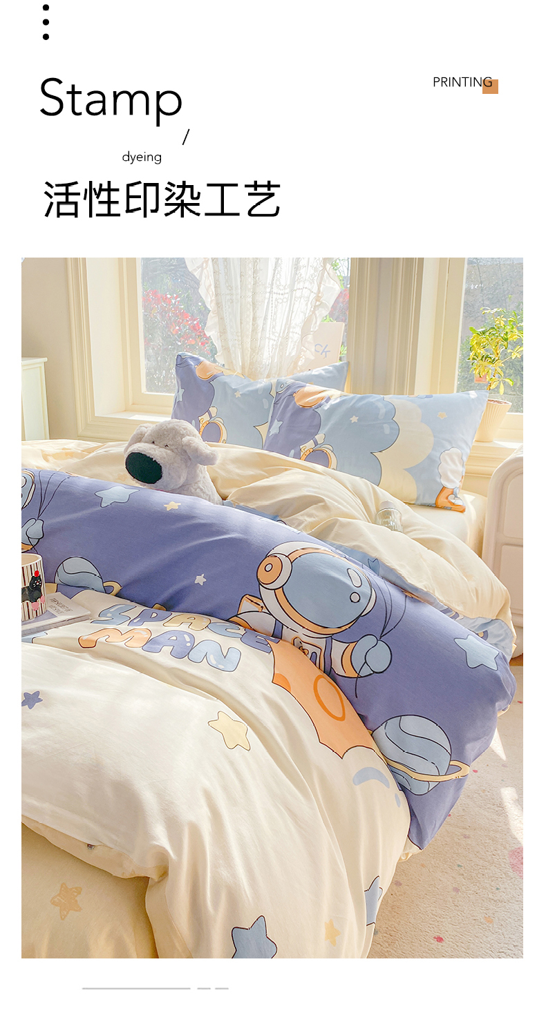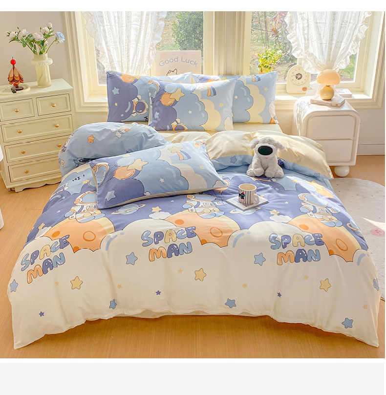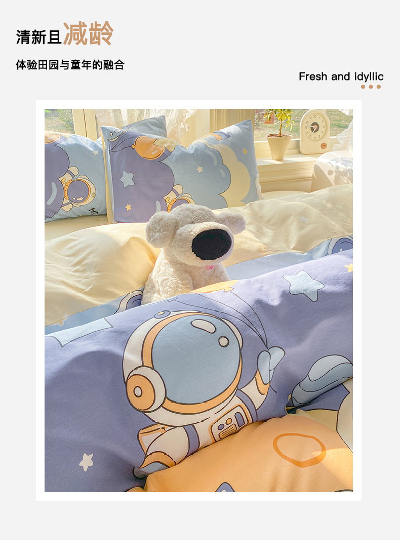 当前位置: 91家纺网 > 商品网购 > 床品套件 > 四件套 > 全棉普通四件套 > 黑马家居 2026新款13070全棉印花小清新卡通花卉四件套系列 宇航员