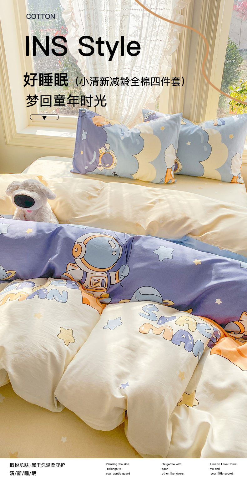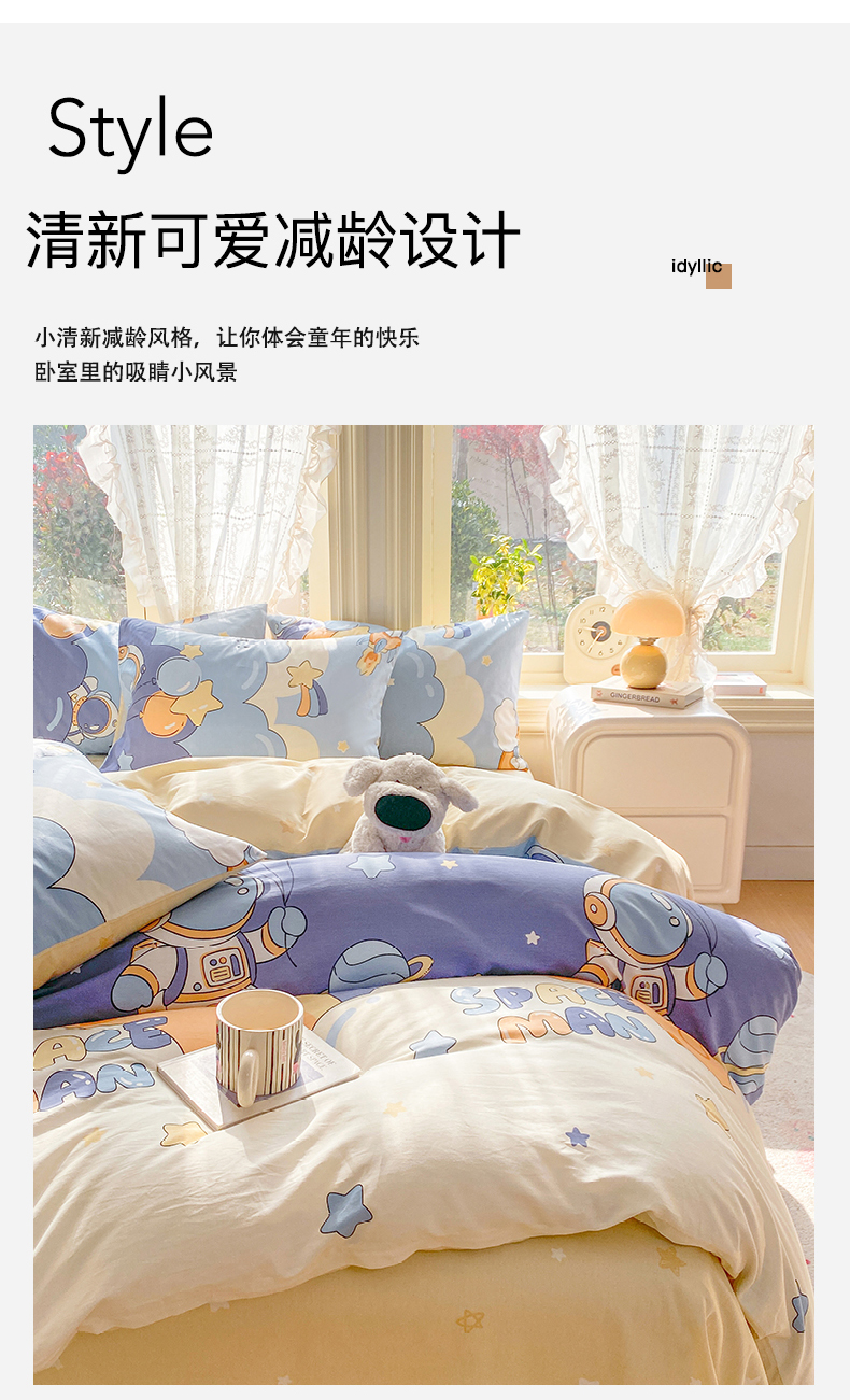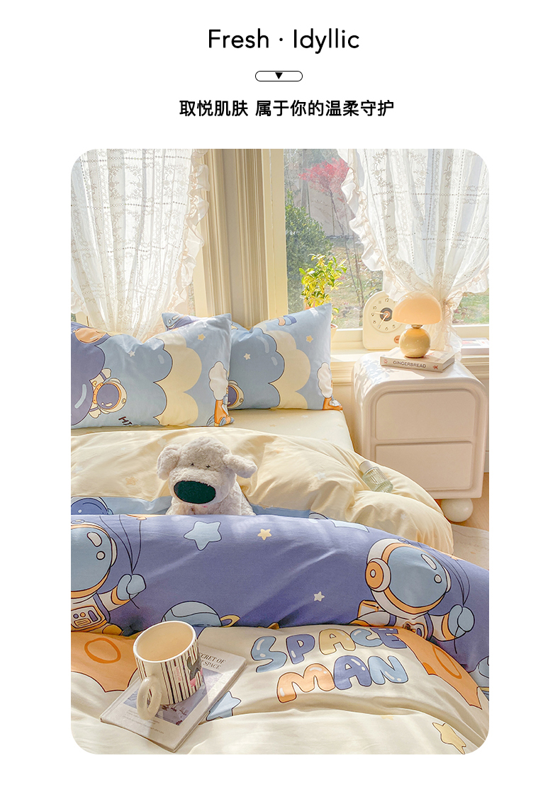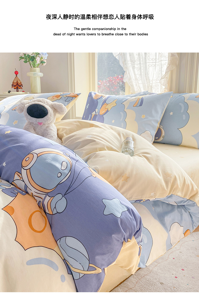 当前位置: 91家纺网 > 商品网购 > 床品套件 > 四件套 > 全棉普通四件套 > 黑马家居 2026新款13070全棉印花小清新卡通花卉四件套系列 宇航员