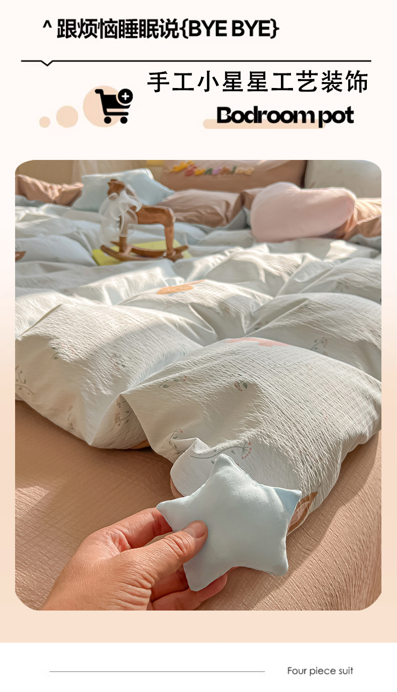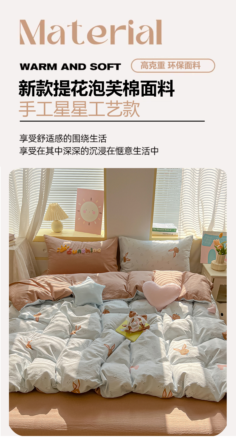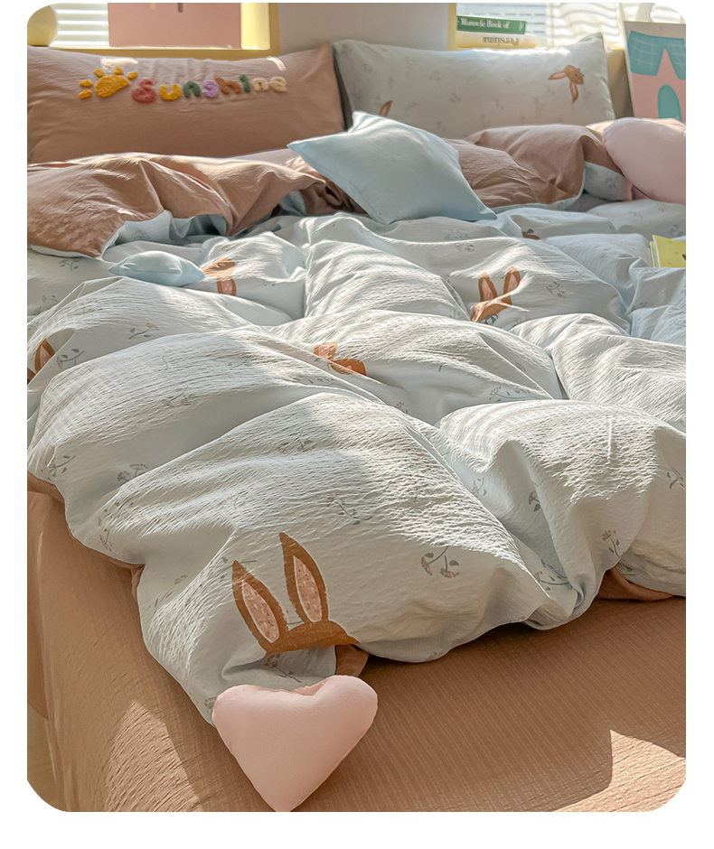 商品名称:子钦家纺 2026春夏新款提花泡芙棉可爱小清新手工爱心小星星系列床单床笠四件套-流星花园 流星花园-碎花兔兔