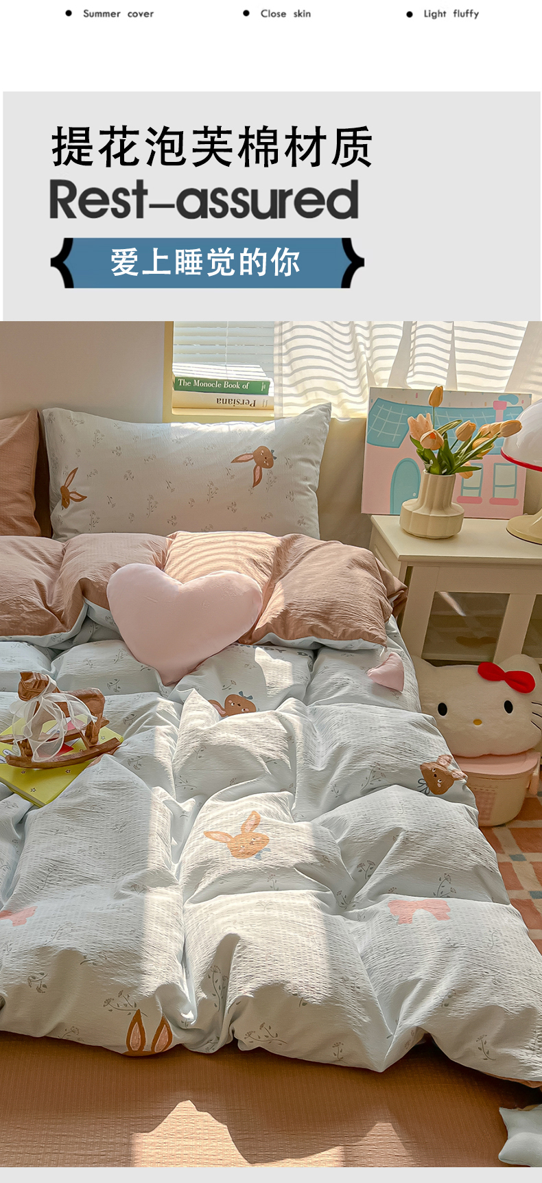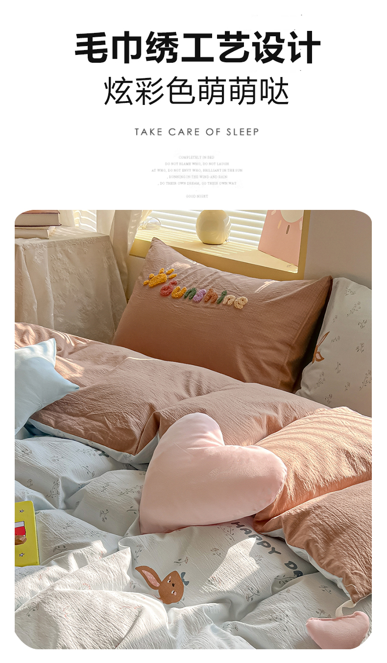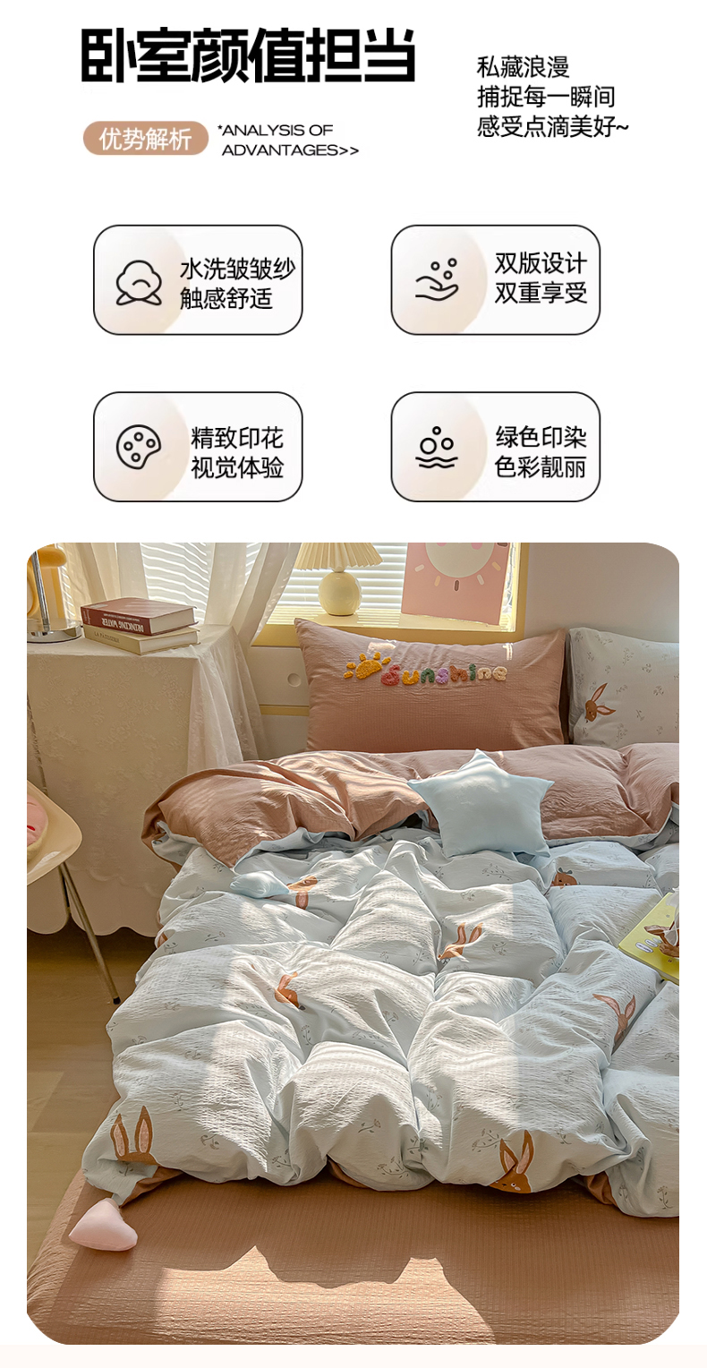 商品名称:子钦家纺 2026春夏新款提花泡芙棉可爱小清新手工爱心小星星系列床单床笠四件套-流星花园 流星花园-碎花兔兔