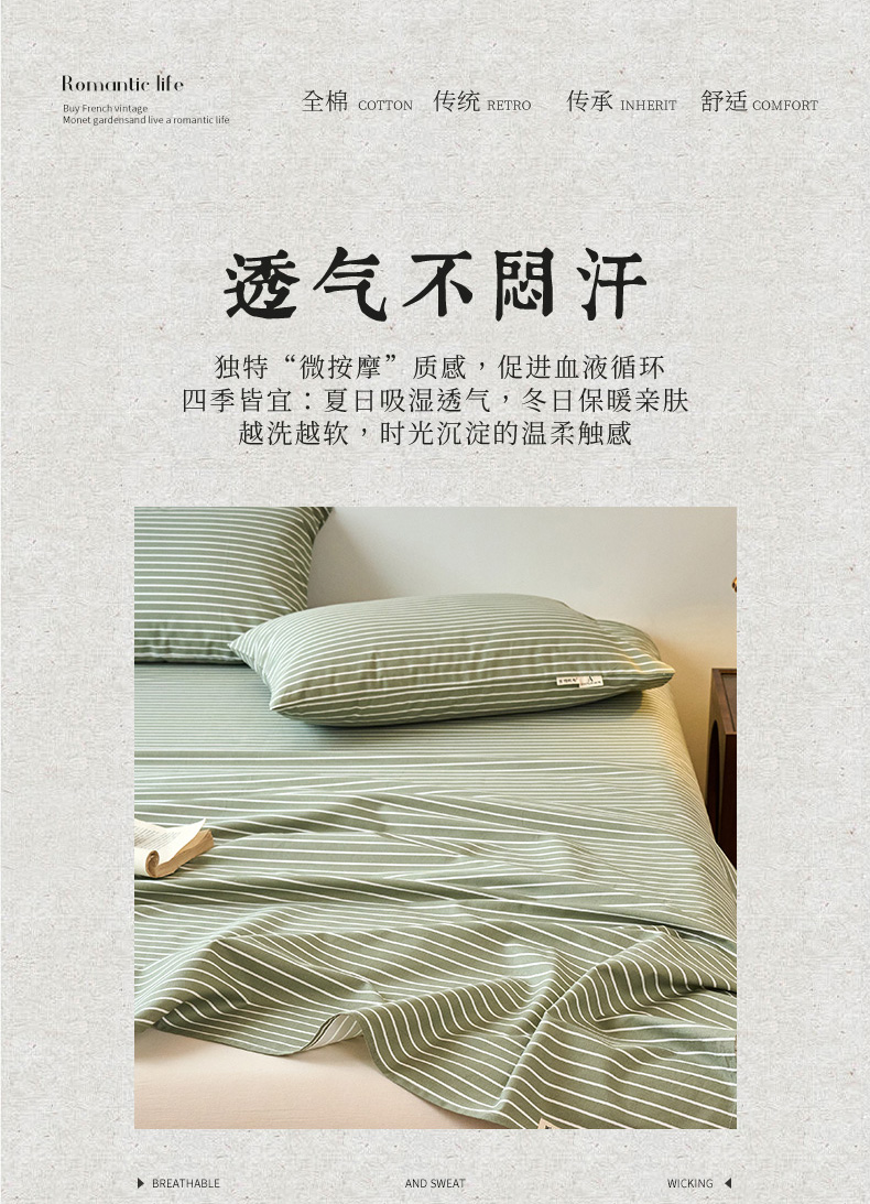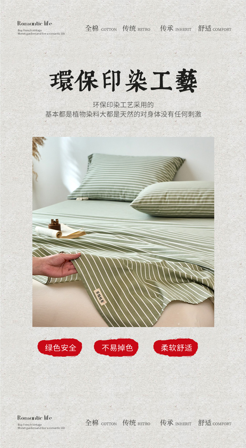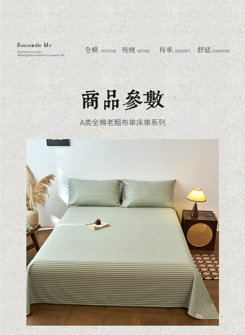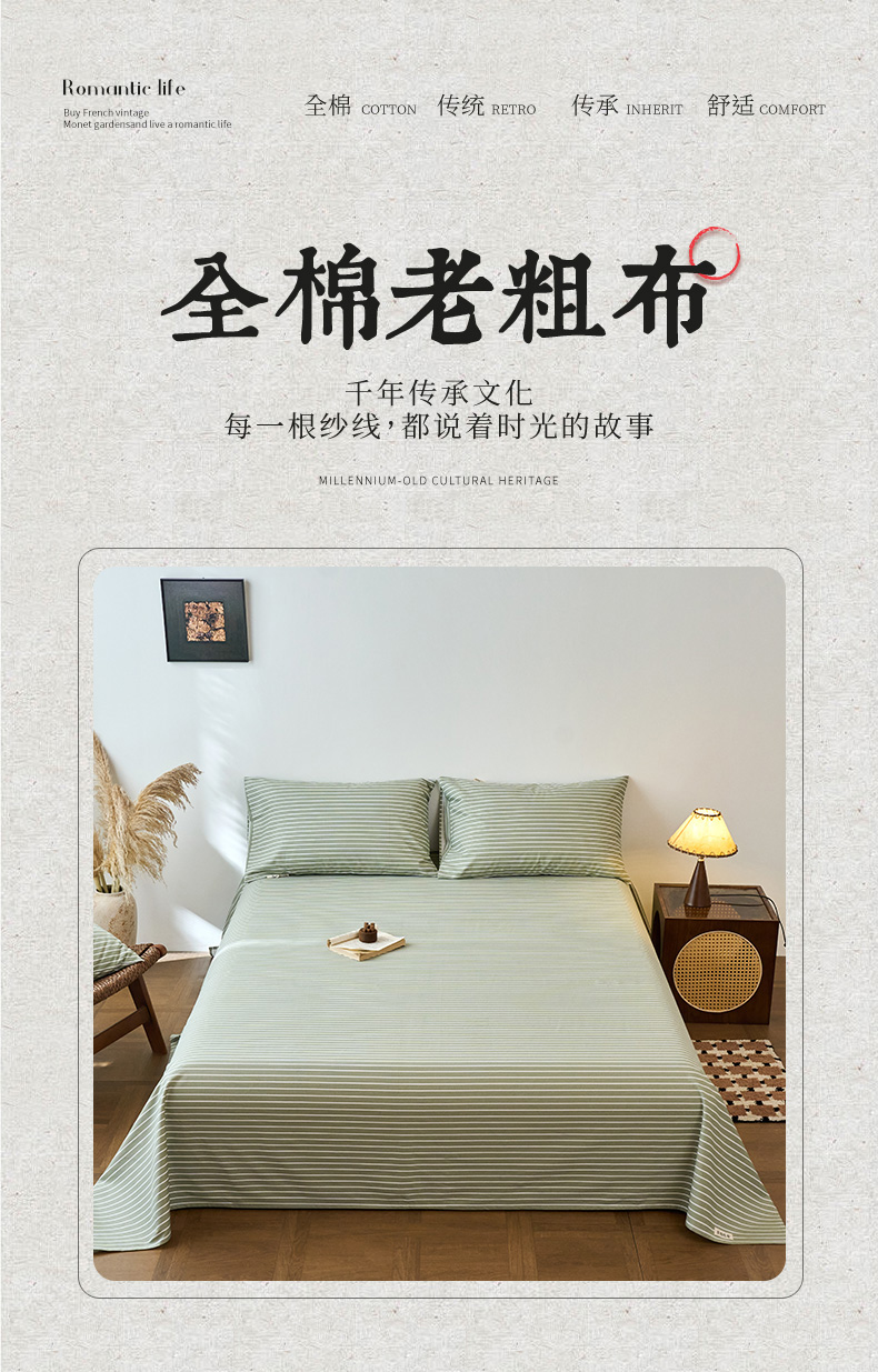 春皖家纺 2026春夏新品简约款老粗布系列床单单品床单床单单件 细川-绿