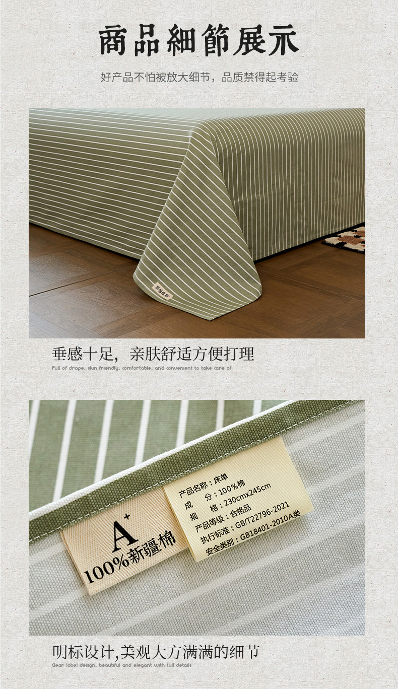 商品名称:春皖家纺 2026春夏新品简约款老粗布系列床单单品床单床单单件 细川-绿