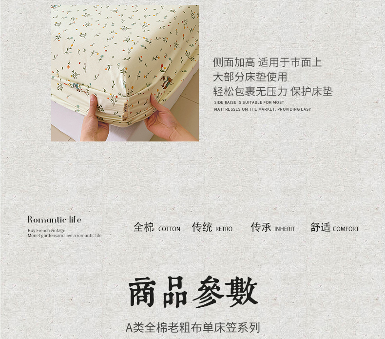 商品名称:春皖家纺 2026春夏新品简约款老粗布系列床笠品单床笠 床笠单件 时光