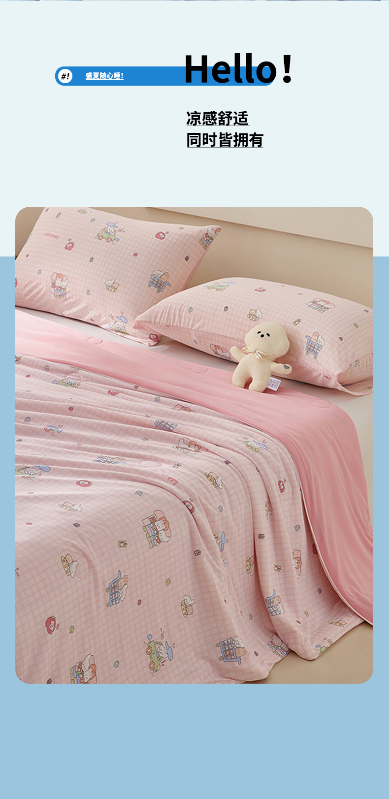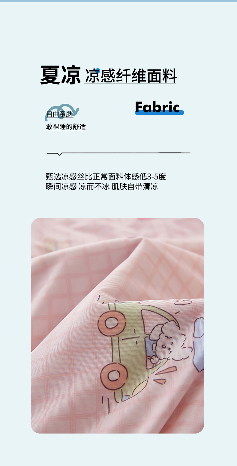 商品名称:梦恬佳 2026新款冰淇淋印花凉感丝夏凉被小冰被 小汽车-粉