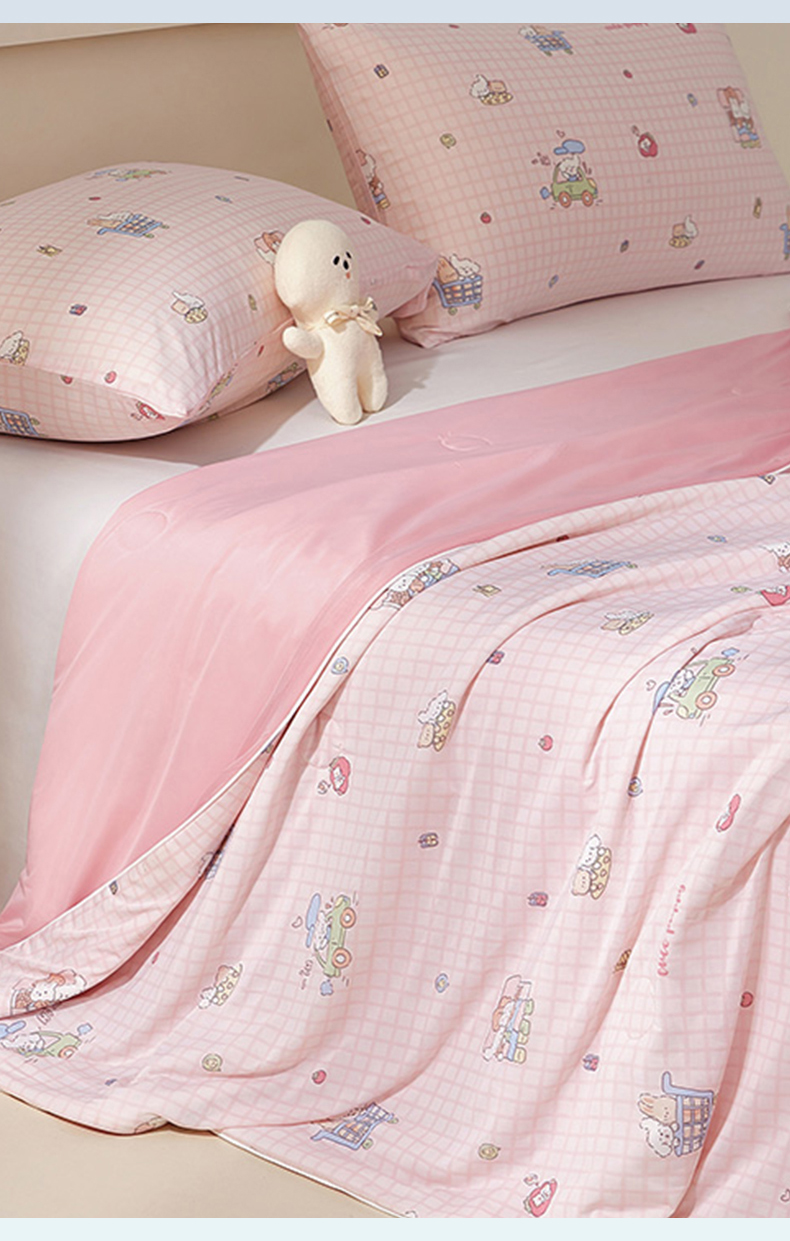 梦恬佳 2026新款冰淇淋印花凉感丝夏凉被小冰被 小汽车-粉