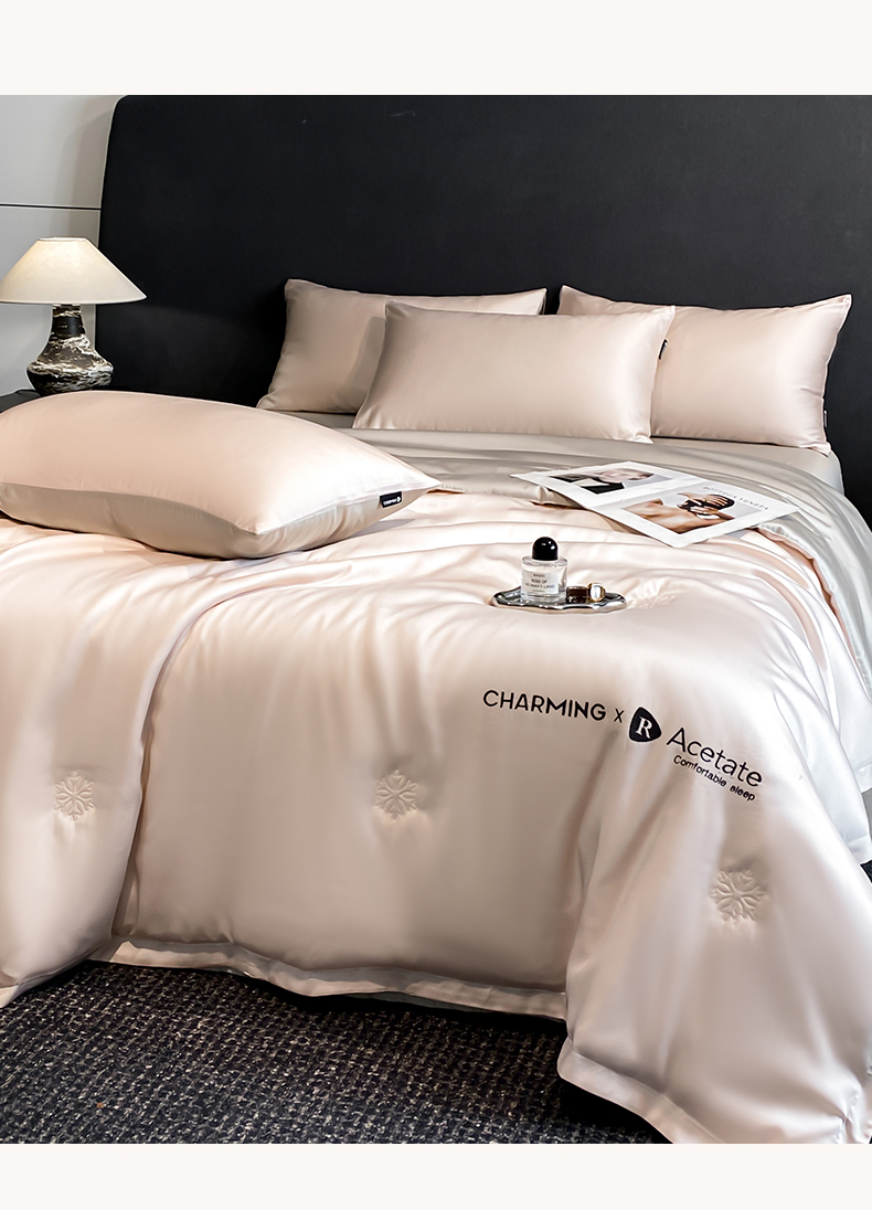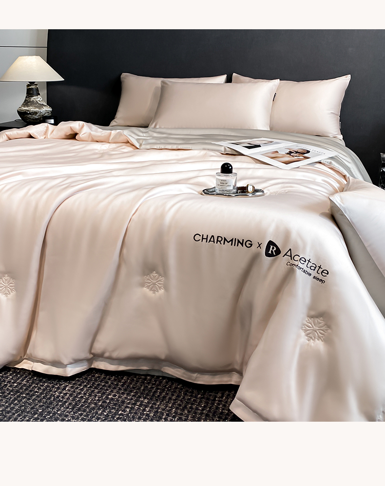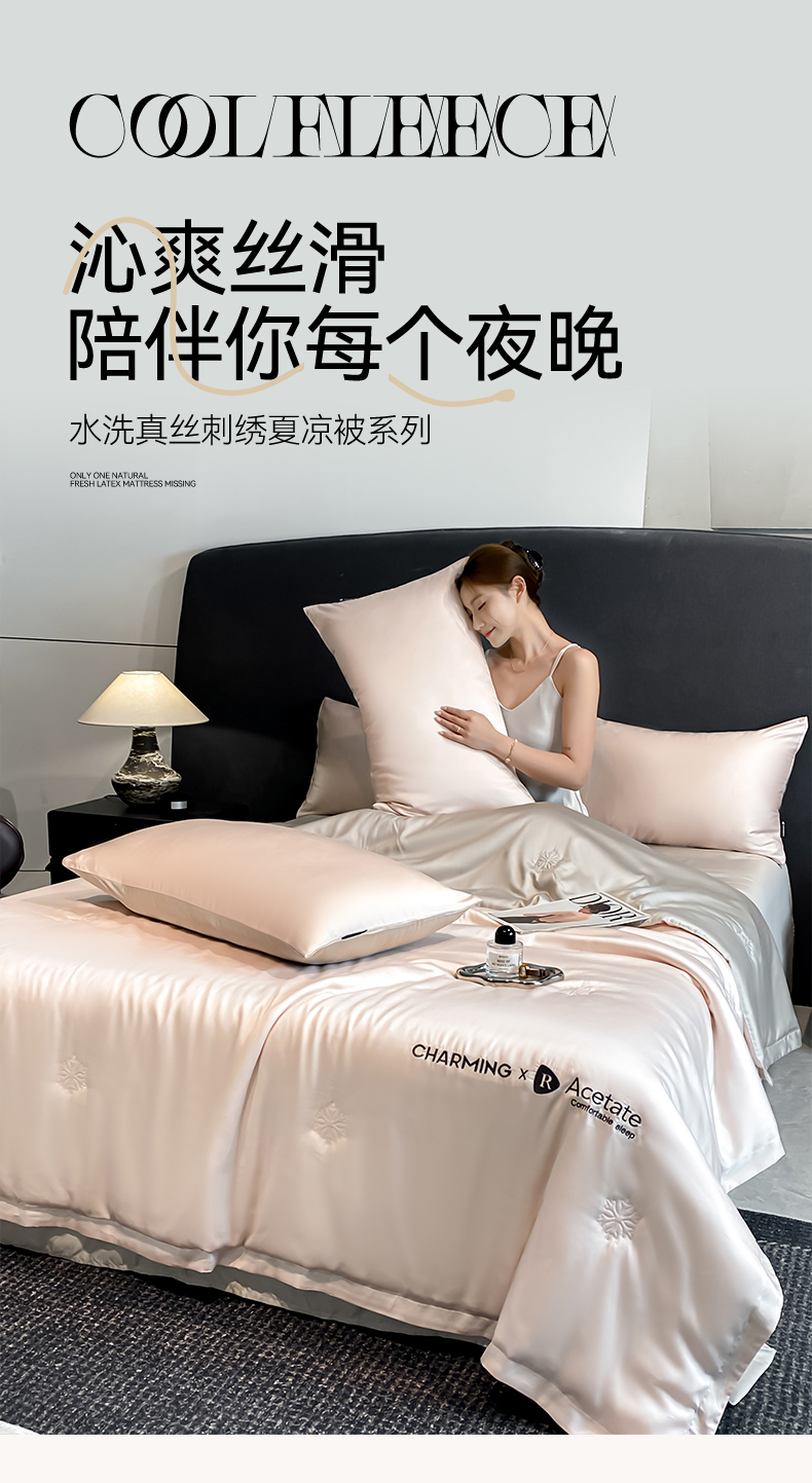 • 91家纺网 家纺一手货源 找家纺 无界 2026新款水洗真丝夏被-雪花绗缝压线-莱拉 莱拉 素粉+冰川灰