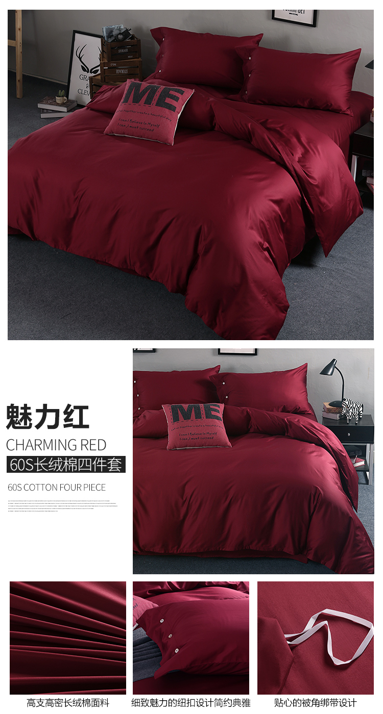 当前位置: 91家纺网 > 商品网购 > 床品套件 > 四件套 > 长绒棉四件套 > 太古汇家居 60长绒棉(纯色)四件套 魅力红TGH012C