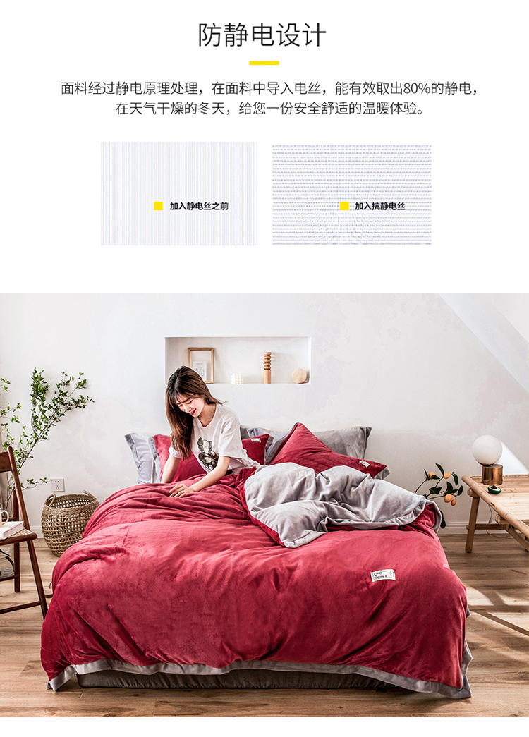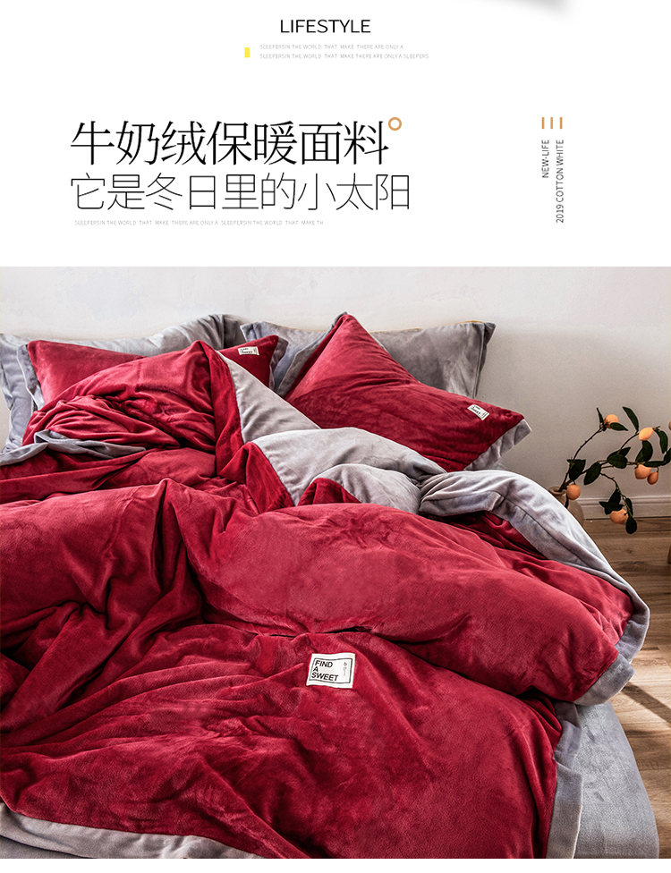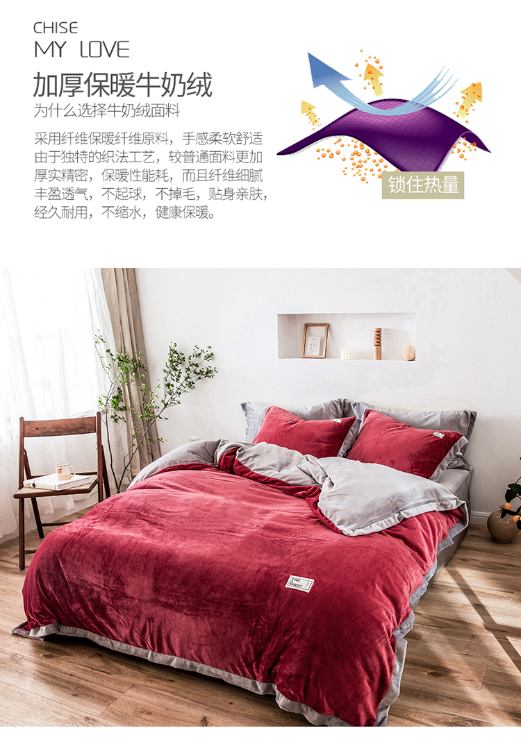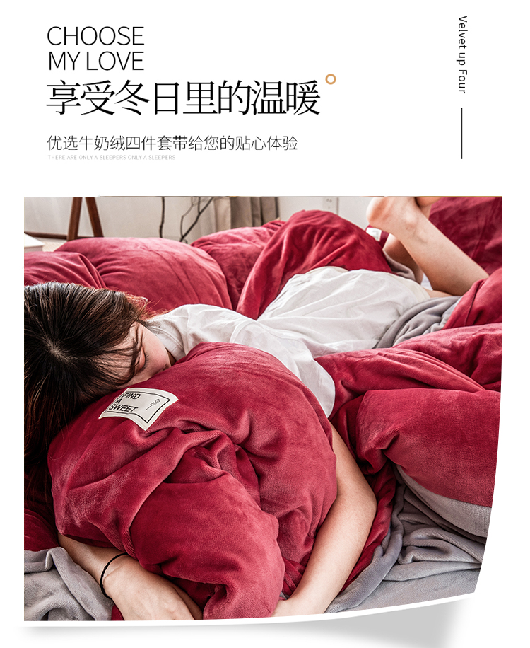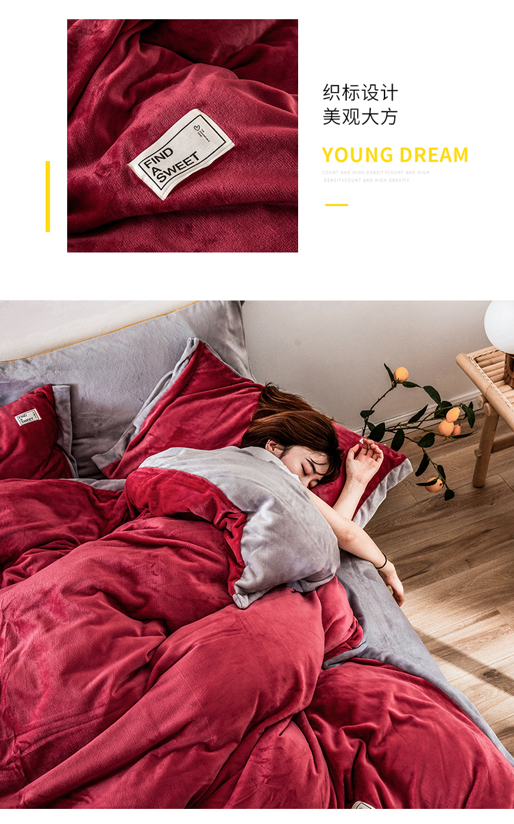 商品名称:润缦 2019新款牛奶绒终版四件套 草莓红浅灰