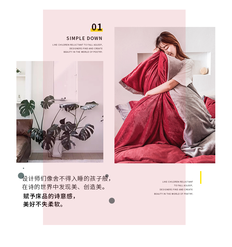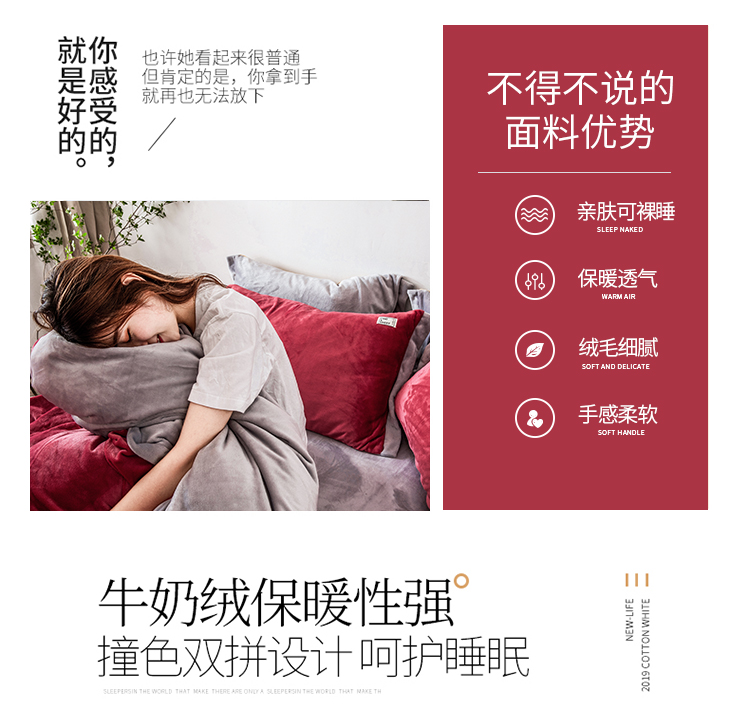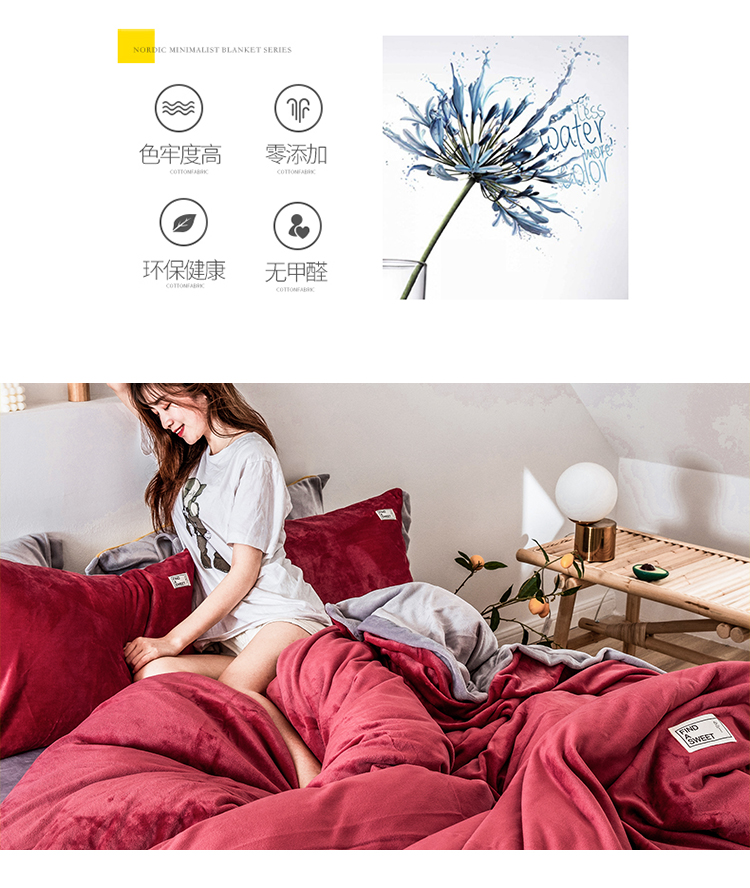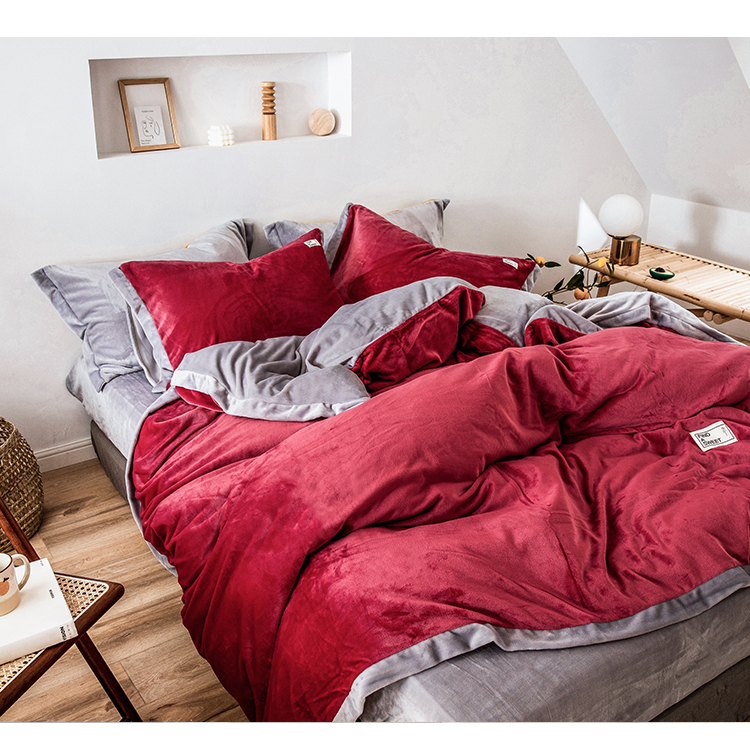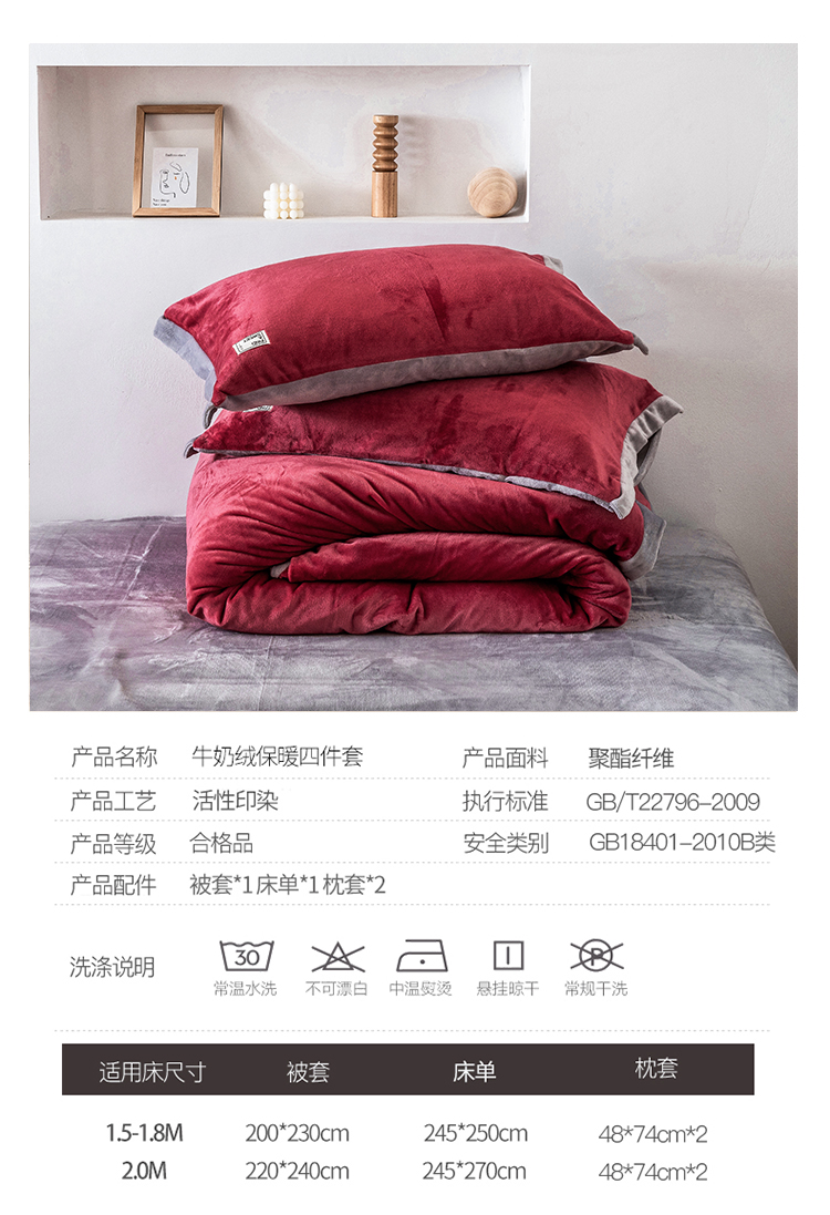 商品名称:润缦 2019新款牛奶绒终版四件套 草莓红浅灰