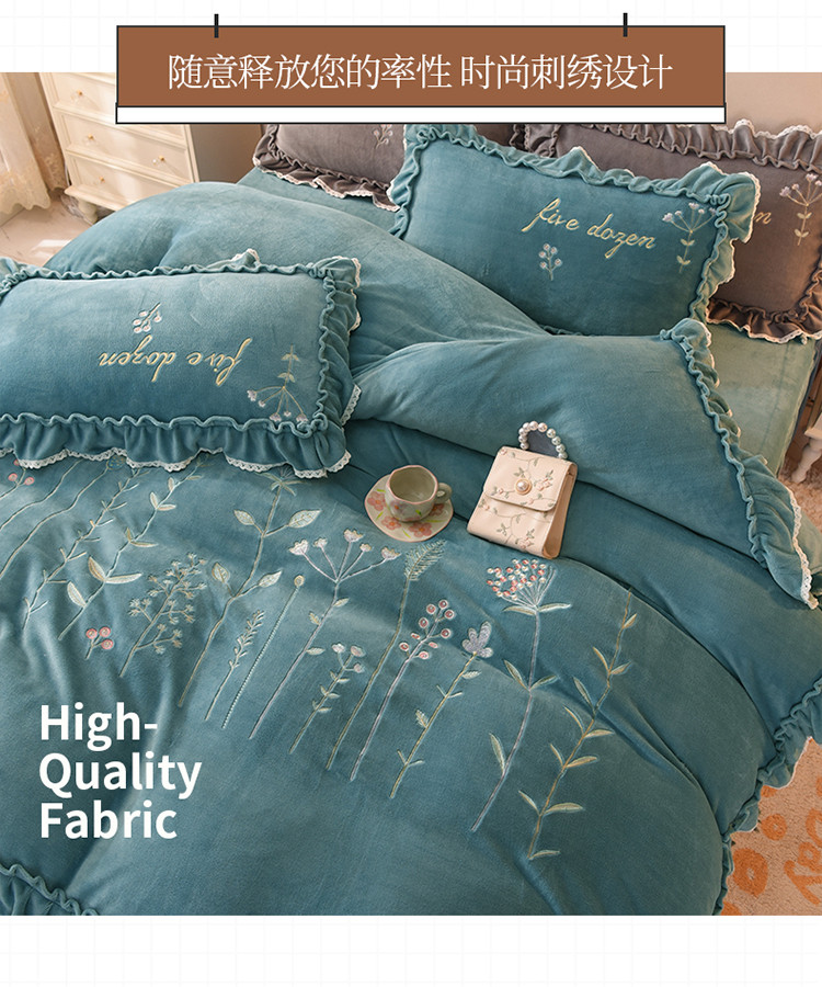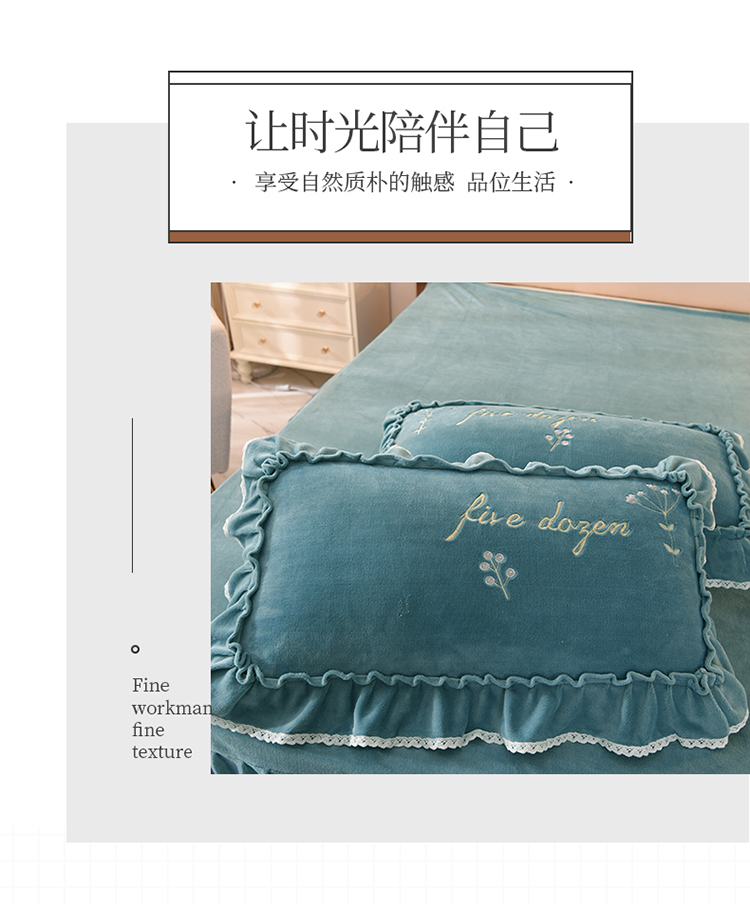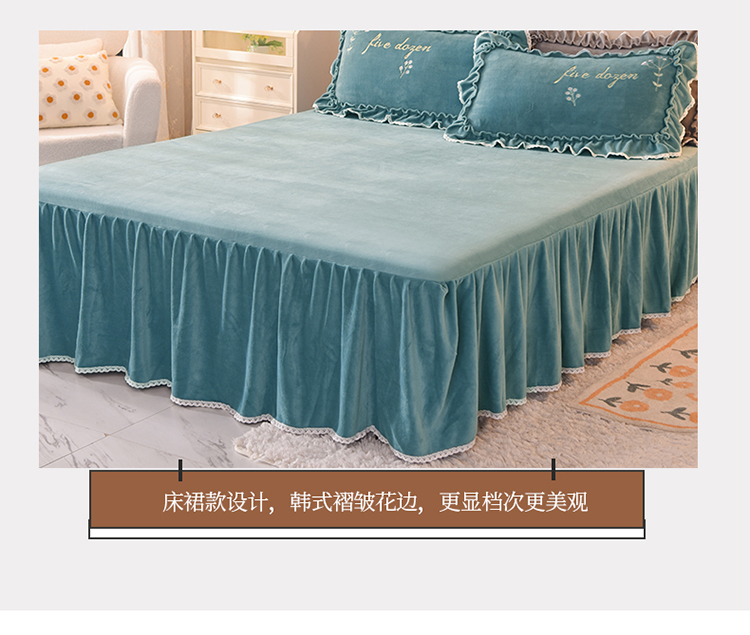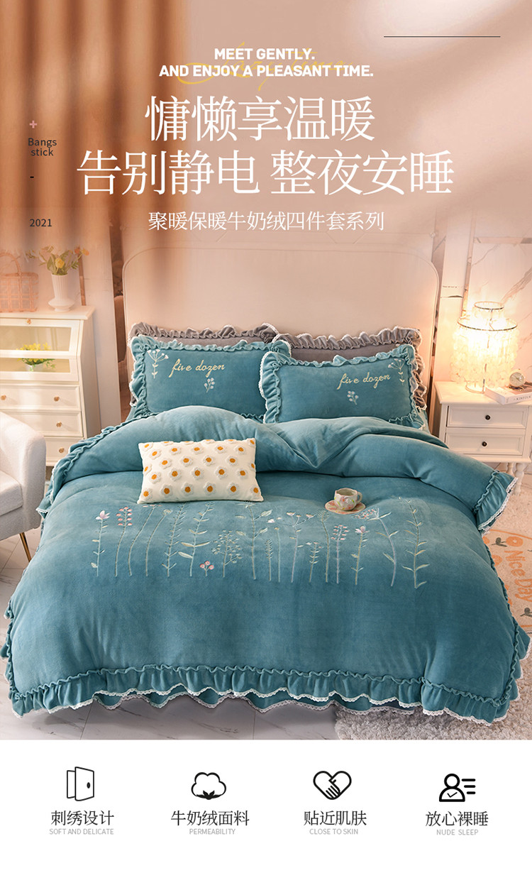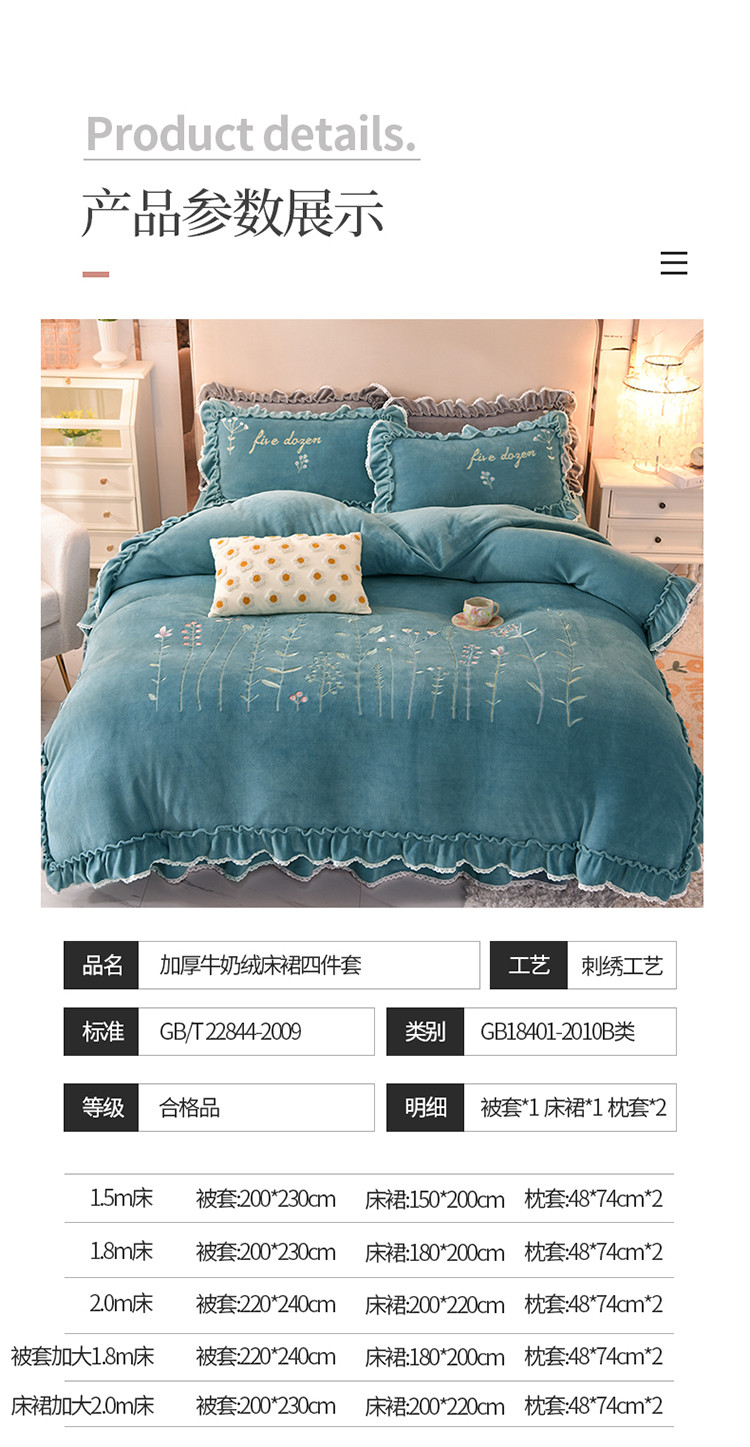 商品名称:迪欧芙 2023新款加厚牛奶绒刺绣床裙款四件套花 花海-蓝色
