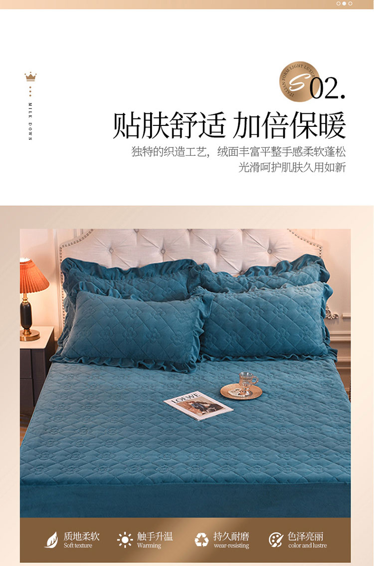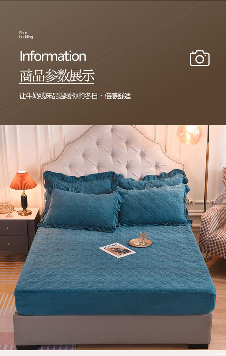 商品名称:甜之梦 2025新款牛奶绒夹棉防滑纯色床笠 宝石蓝