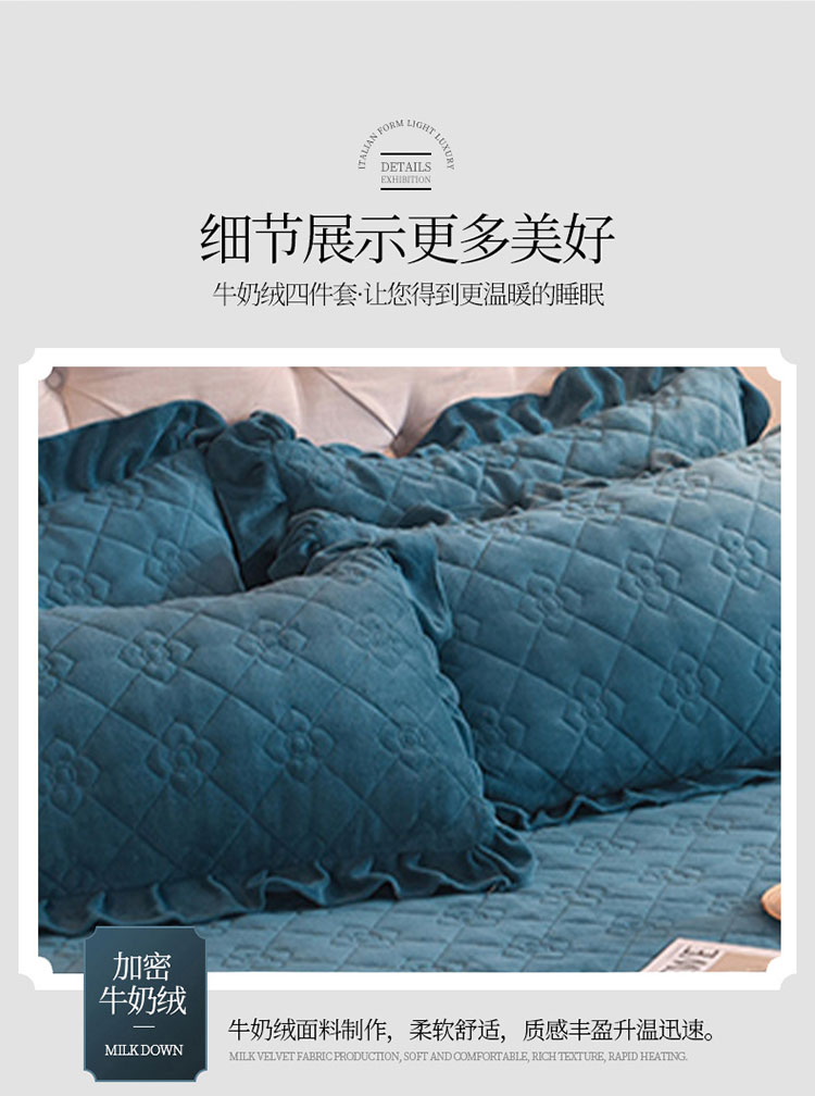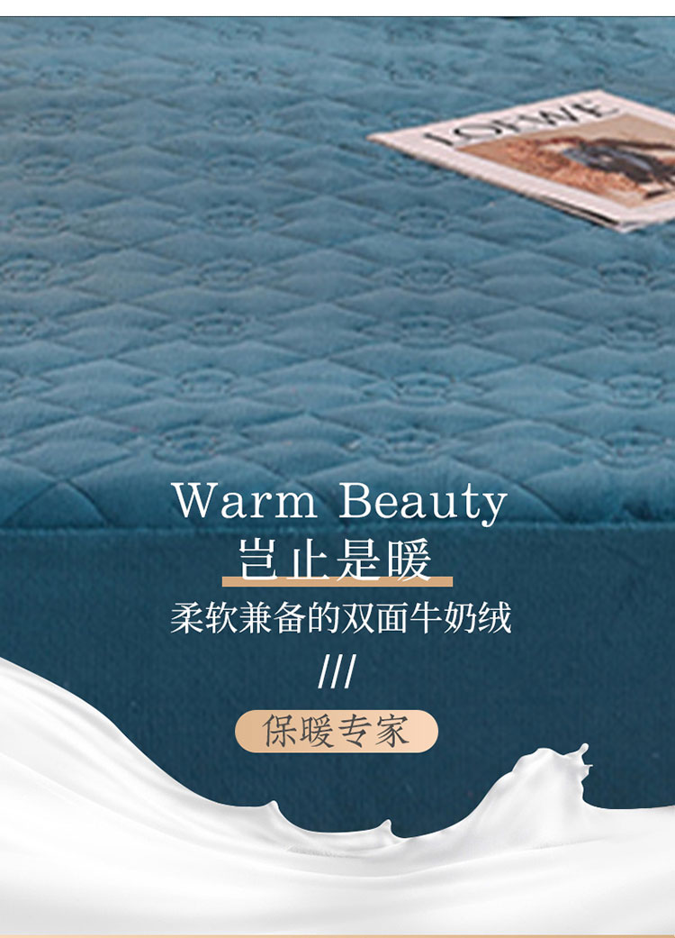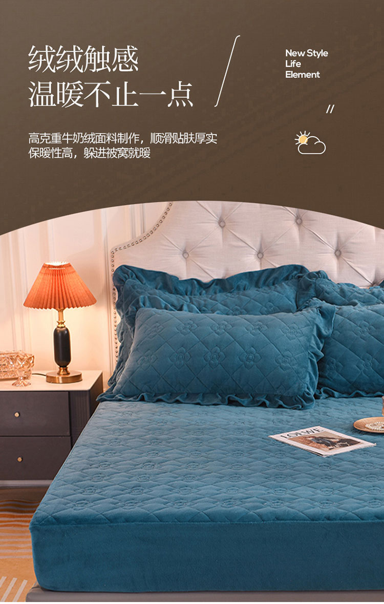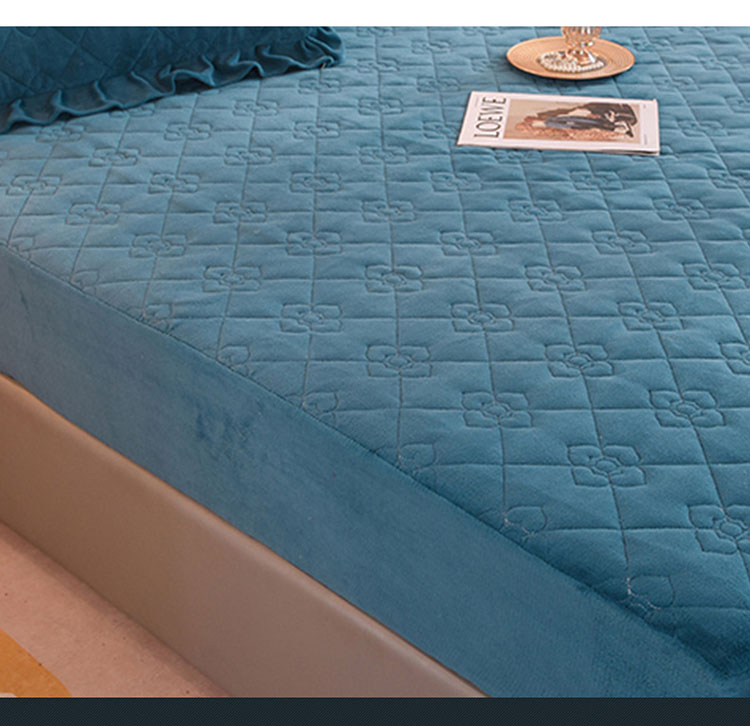 甜之梦 2025新款牛奶绒夹棉防滑纯色床笠 宝石蓝