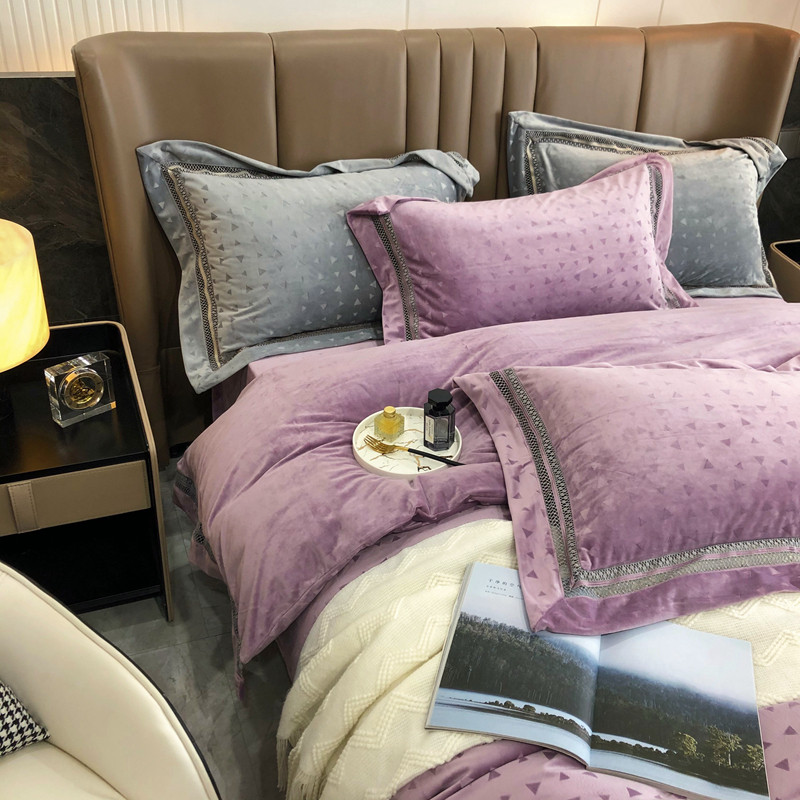 榻尚家居 2021新款爱丽丝纯色浮雕婴肤绒四件套 爱丽丝-紫