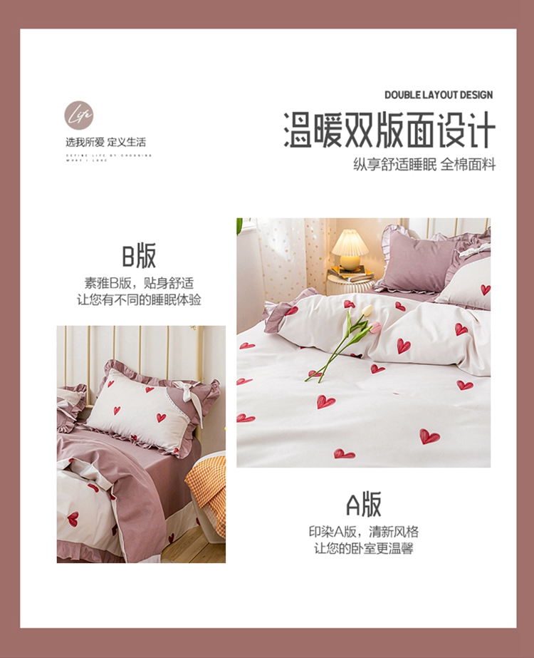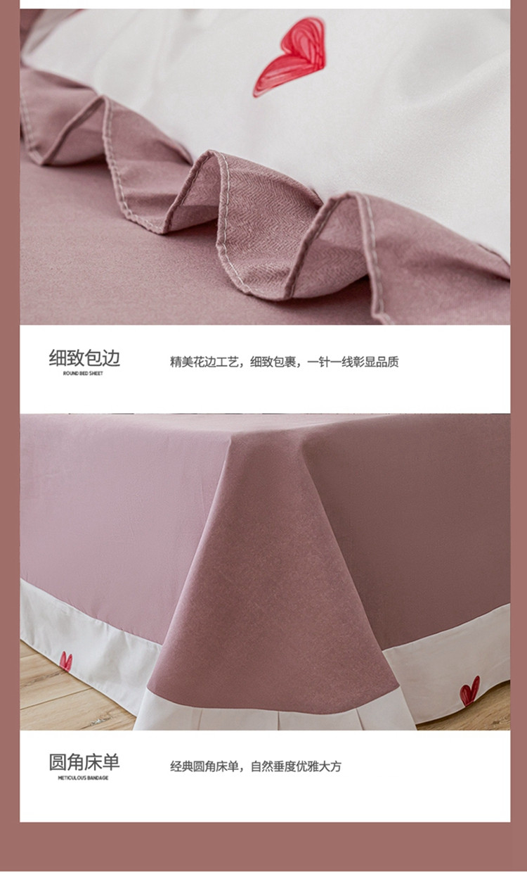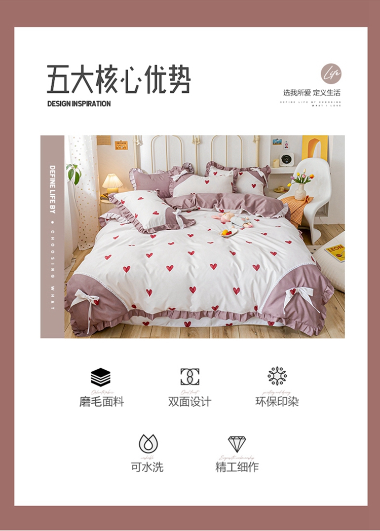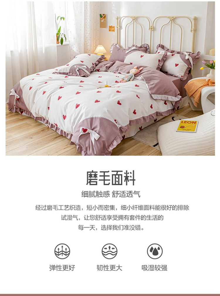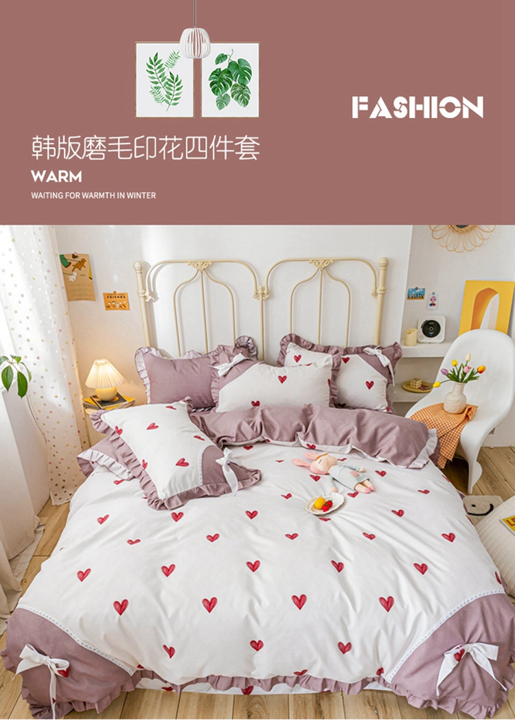 靓生活 2021新款韩版磨毛四件套 小爱心-珍珠白