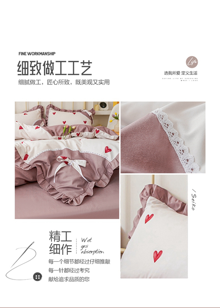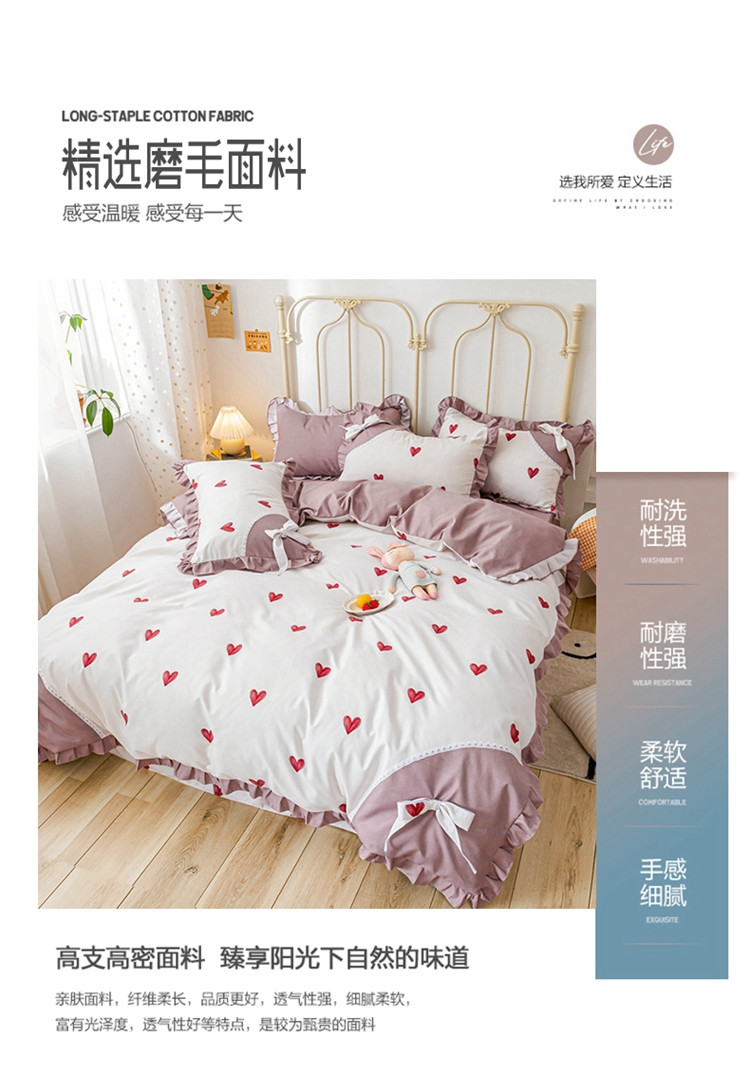 商品名称:靓生活 2021新款韩版磨毛四件套 小爱心-珍珠白