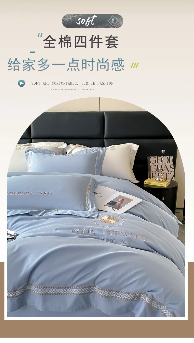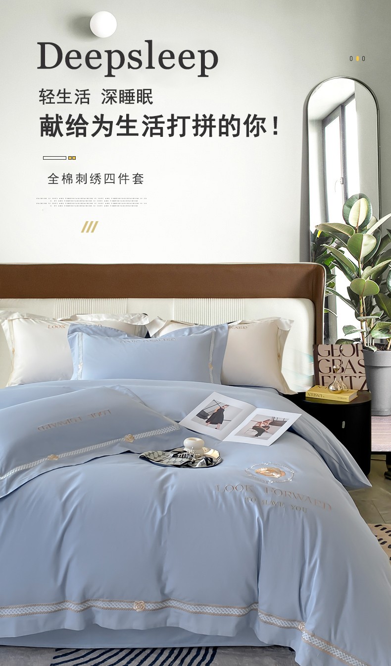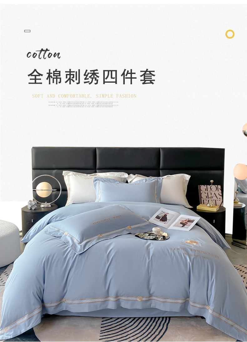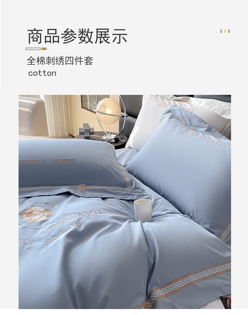商品名称:安妮 2023新款全棉刺绣四件套邂逅系列 天空蓝