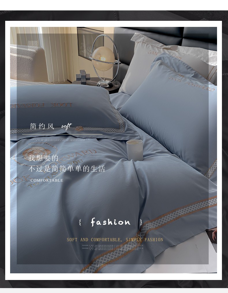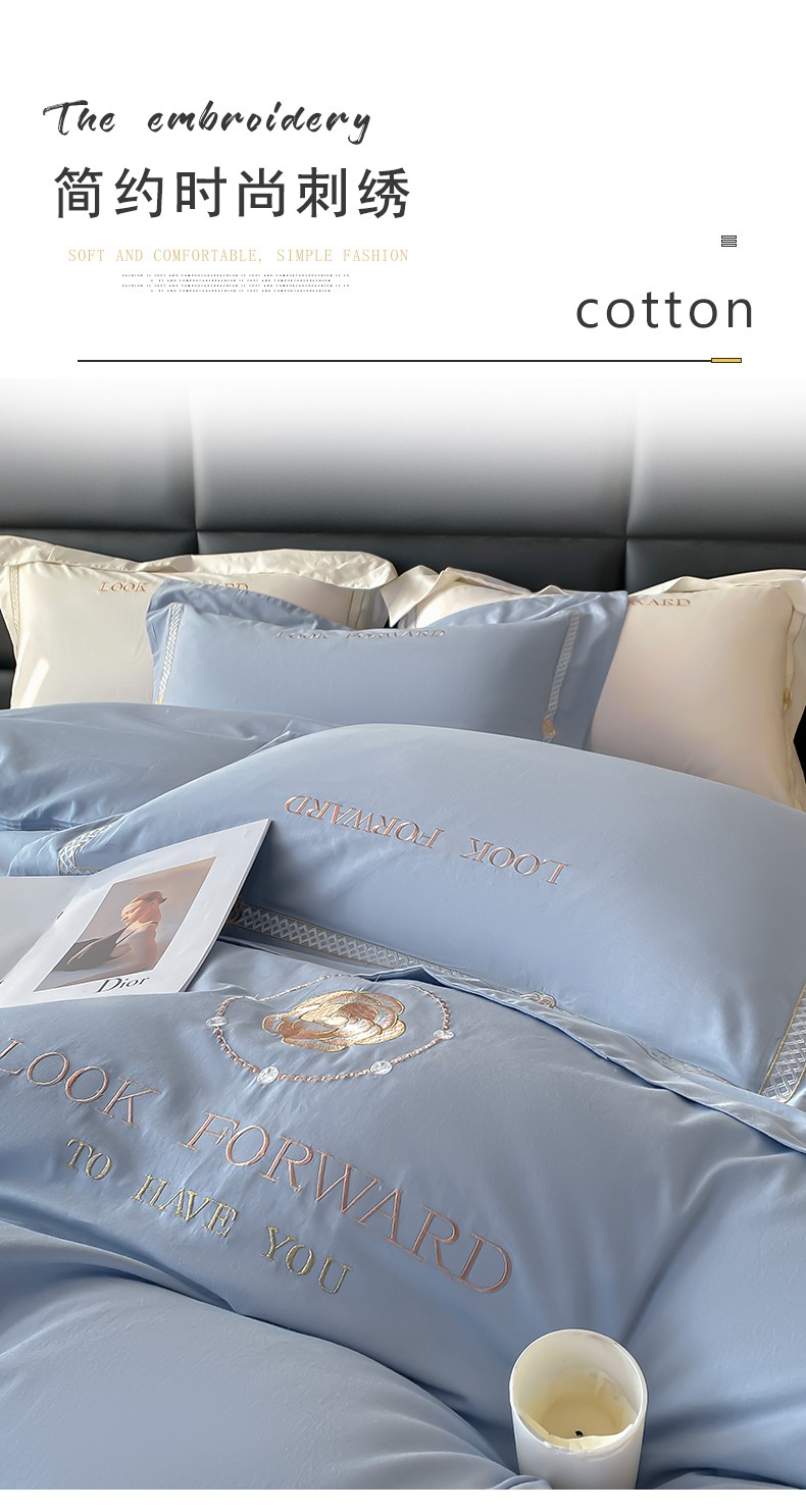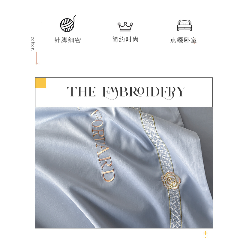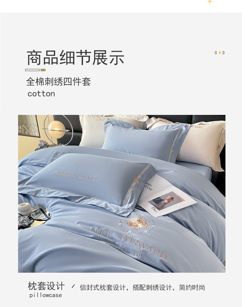 商品名称:安妮 2023新款全棉刺绣四件套邂逅系列 天空蓝