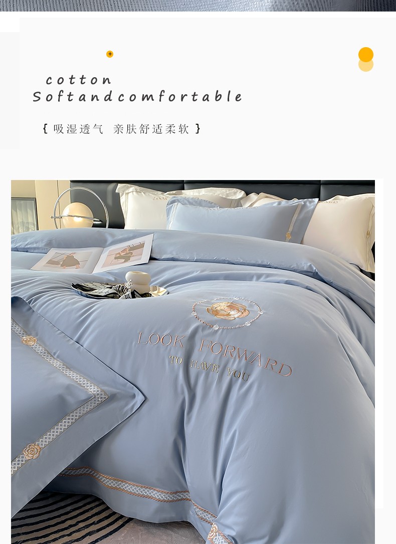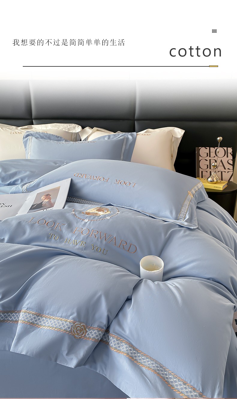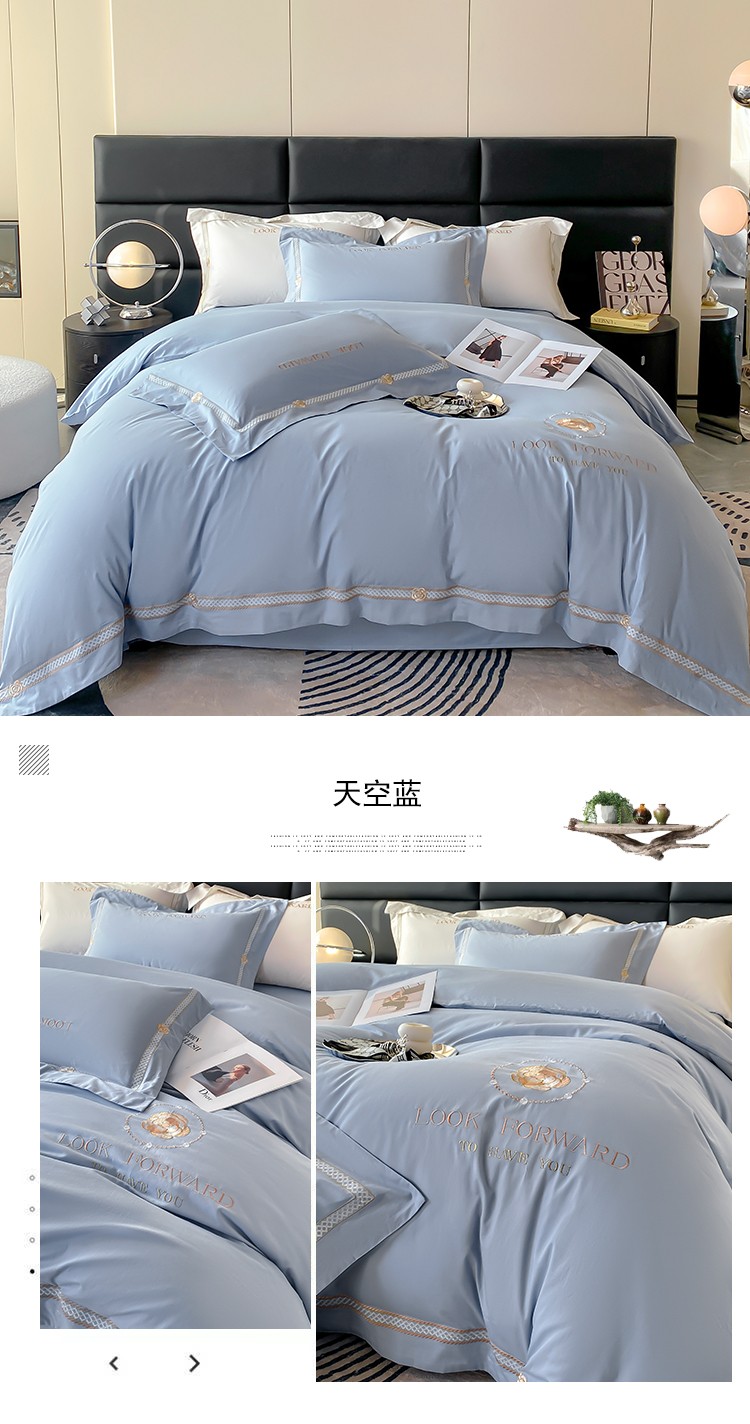 安妮 2023新款全棉刺绣四件套邂逅系列 天空蓝