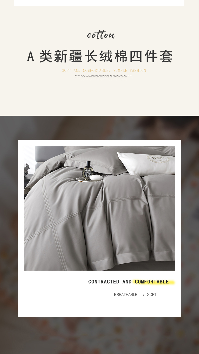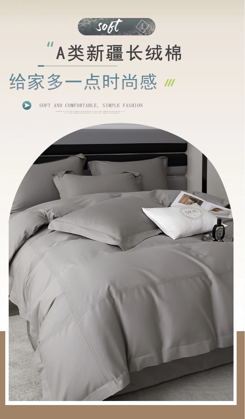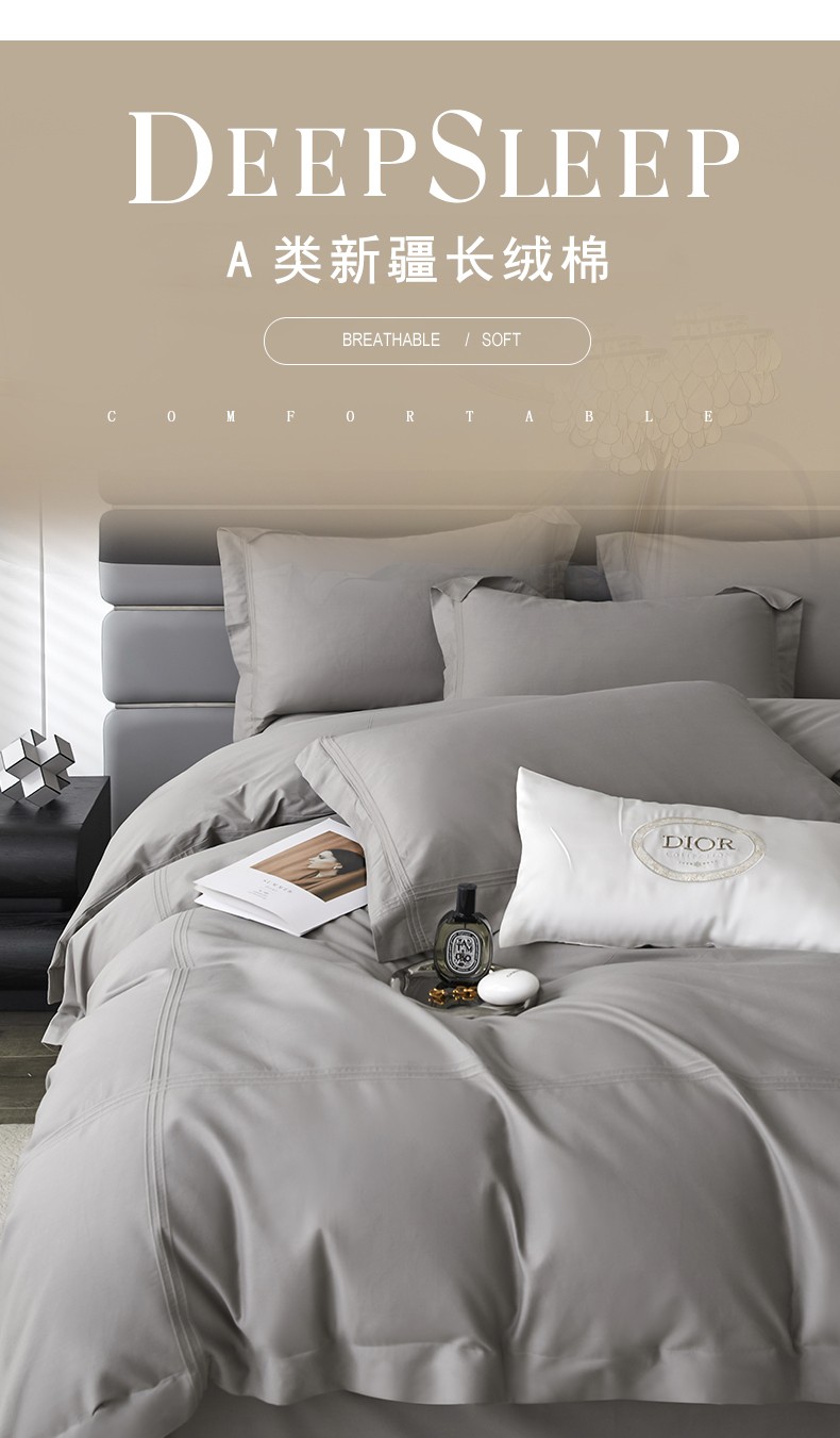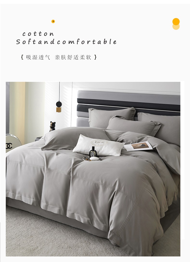 (总)安妮家居 2025新款100S长绒棉贡缎纯色四件套,水漾蓝,胧月灰,奶白色,蔷薇粉,柔缦紫,砂砾咖
