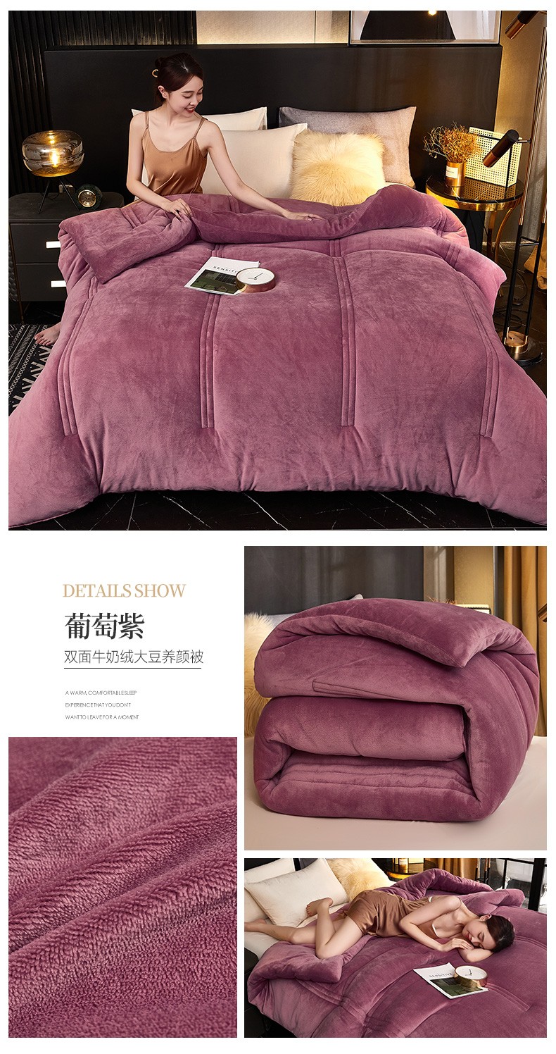 钰博 2023新款双面牛奶绒大豆养 颜被 葡萄紫