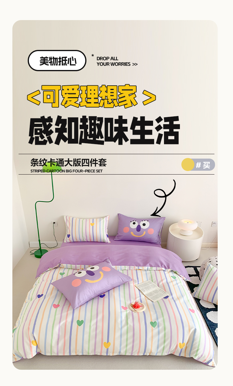 澳萝拉 2024新款全棉条纹卡通大版四件套 童话梦