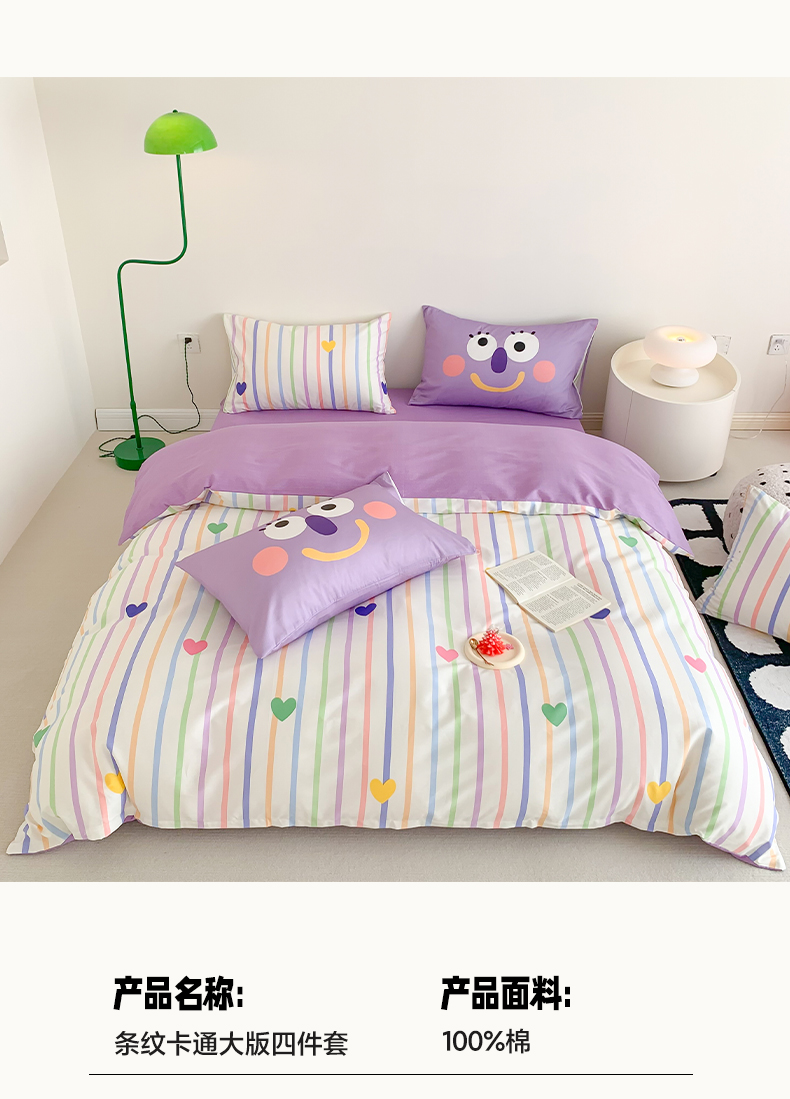 商品名称:澳萝拉 2024新款全棉条纹卡通大版四件套 童话梦
