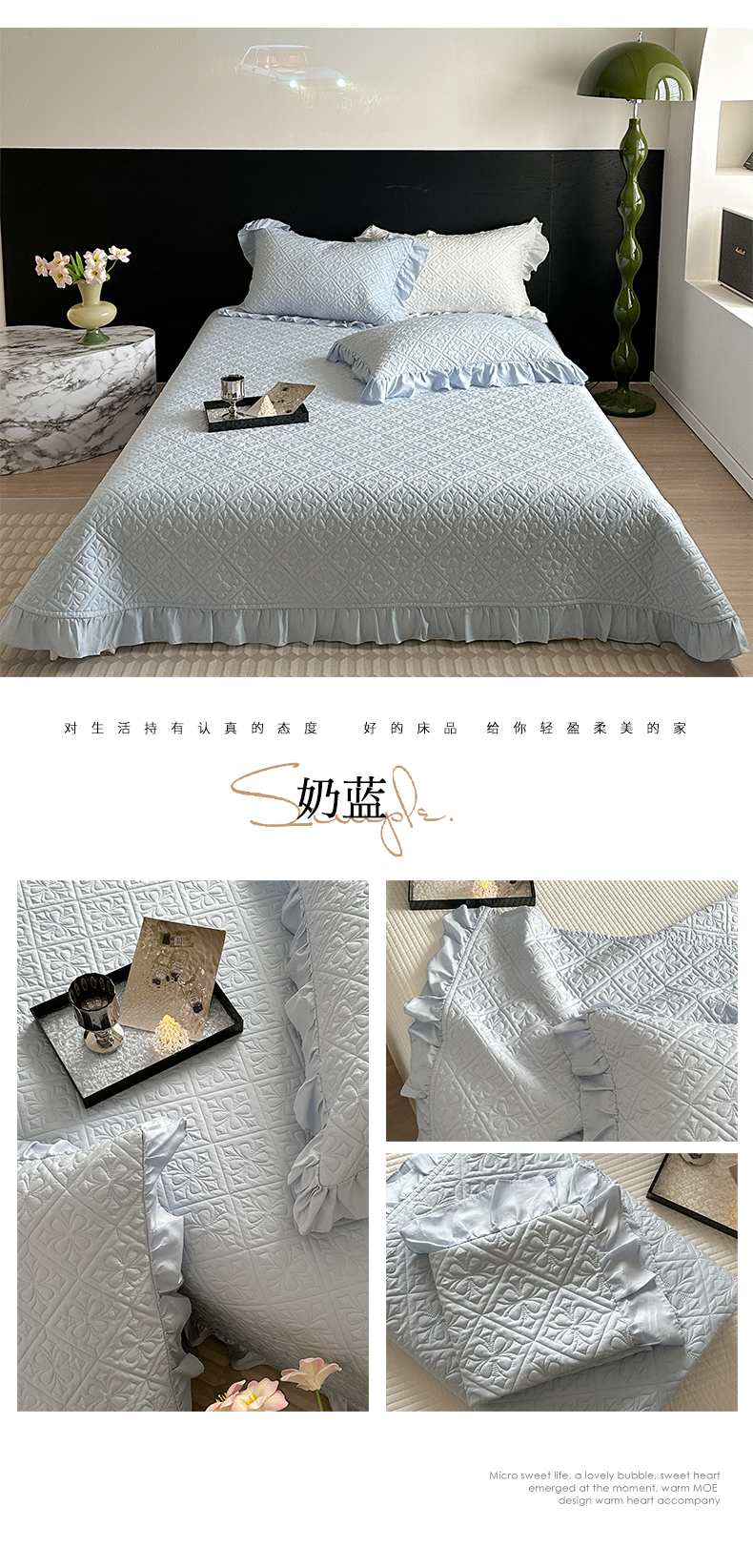 诗黛尔 2024春夏新款莱赛尔克罗星花边床盖系列三件套 奶蓝