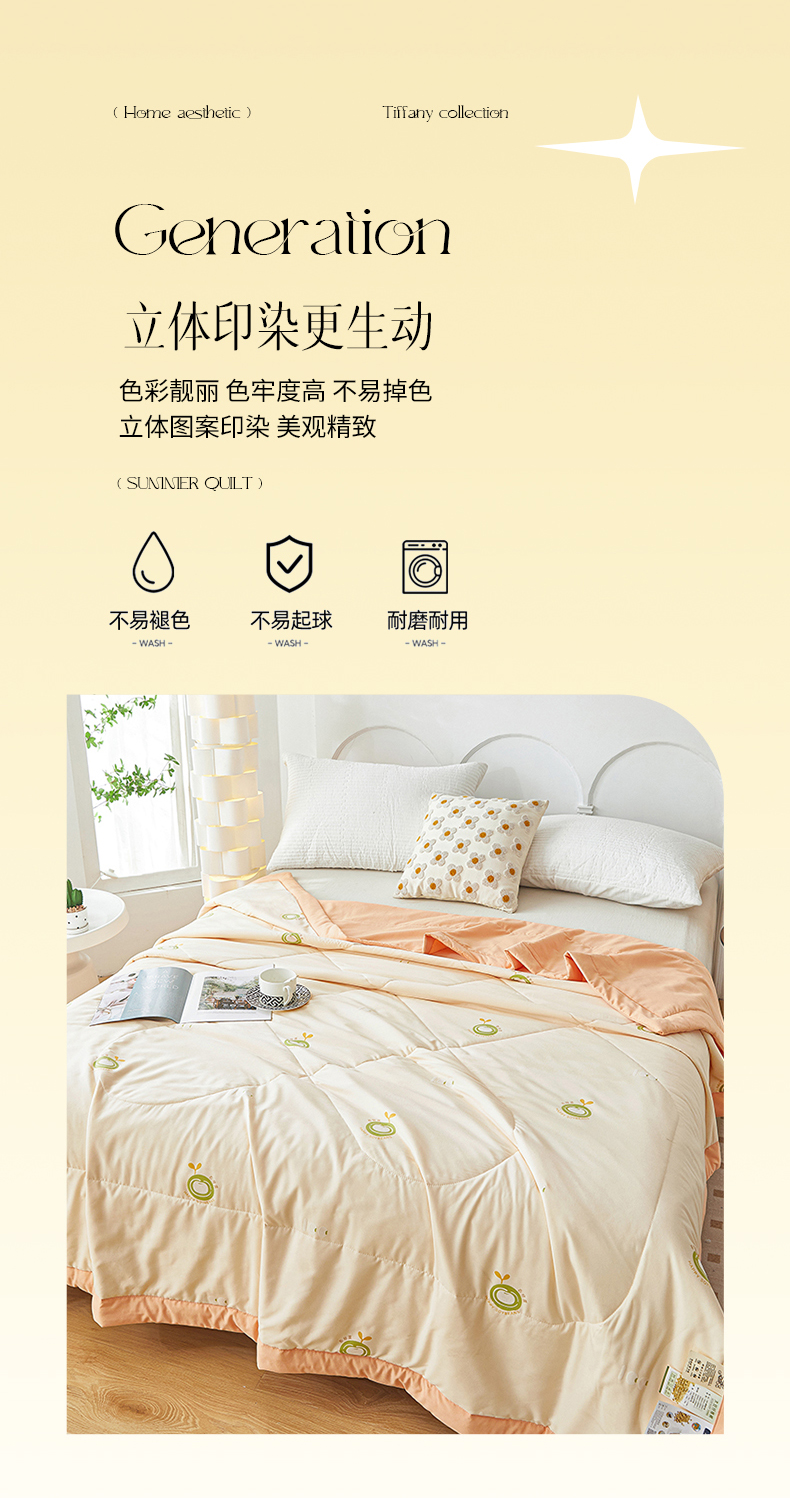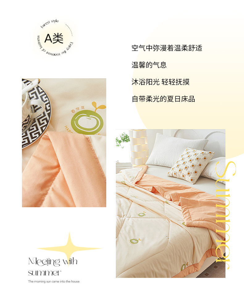 欧朵家纺 2025新款A类奶小棉立体印花夏被 苹果派