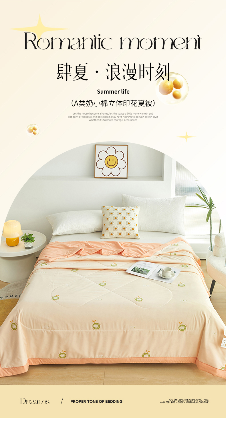 (总)欧朵家纺 2025新款A类奶小棉立体印花夏被,粉黛,苹果派,小鹅乐园,幸运花,萌猫,银杏橙