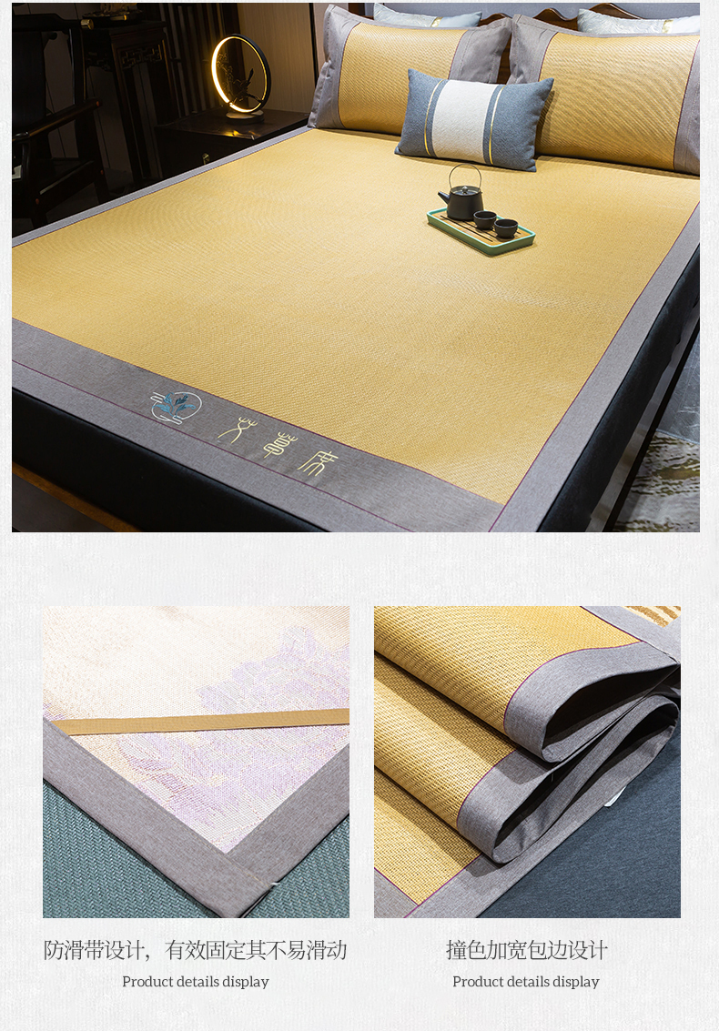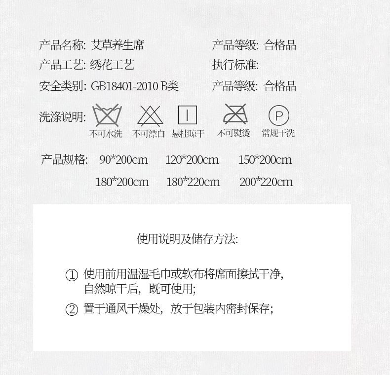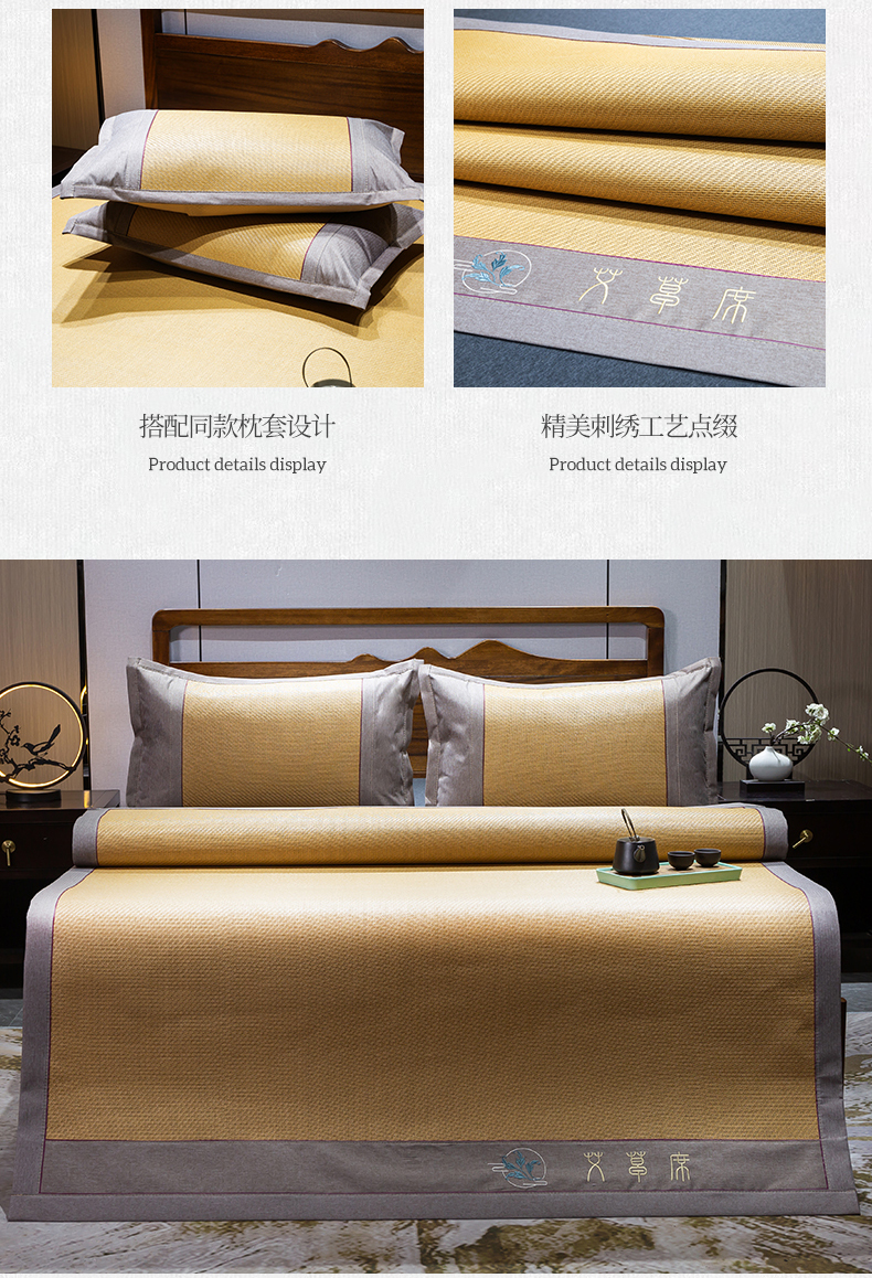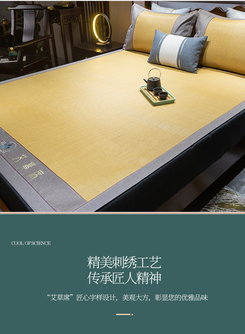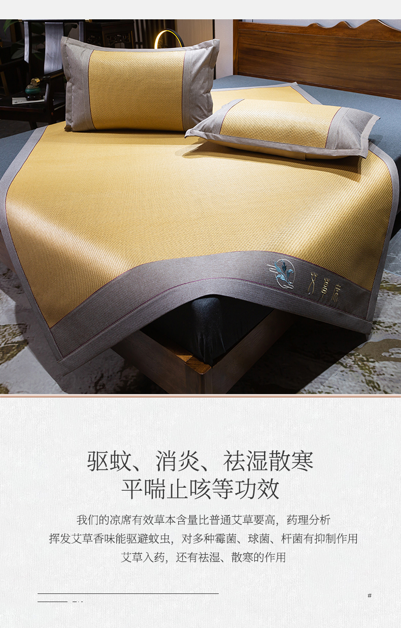 商品名称:青雅席业 2025新款艾草绣花工艺养生席 艾草-姜黄