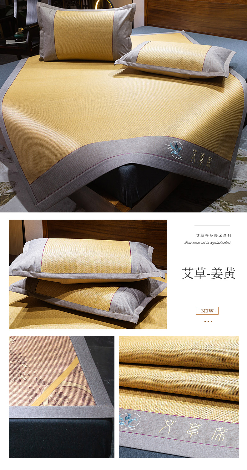 青雅席业 2025新款艾草绣花工艺养生席 艾草-姜黄