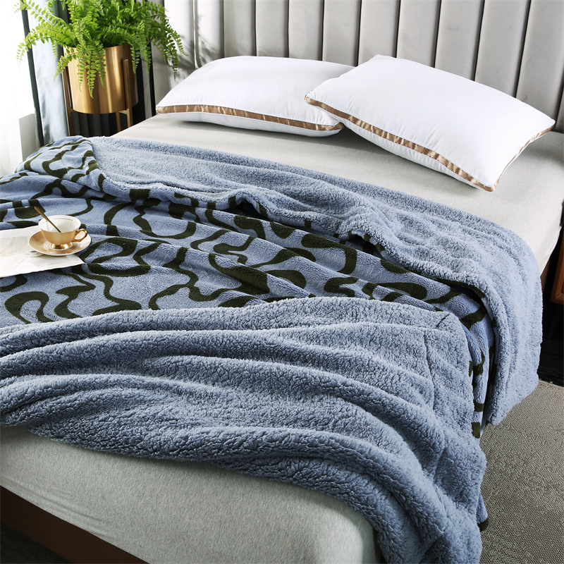 商品名称:巴木赫 2024新款熊猫绒配同色羊羔绒毛毯 鸭青配色羊羔绒