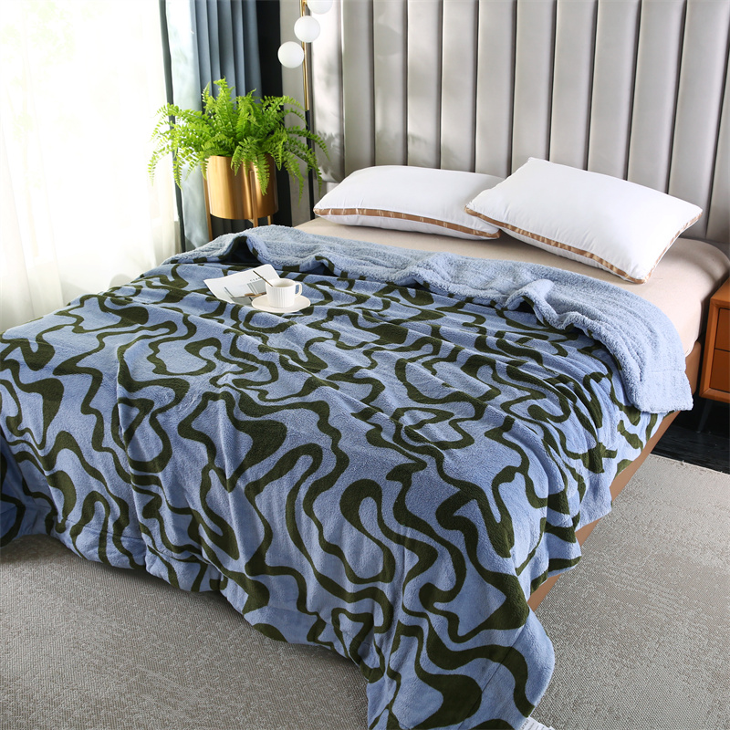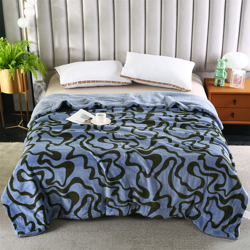 (总)巴木赫 2024新款300克印花泡泡毛毯毯子,大理石纹,红棕,奶白,浅咖,深灰,水墨画,紫色,棕色
