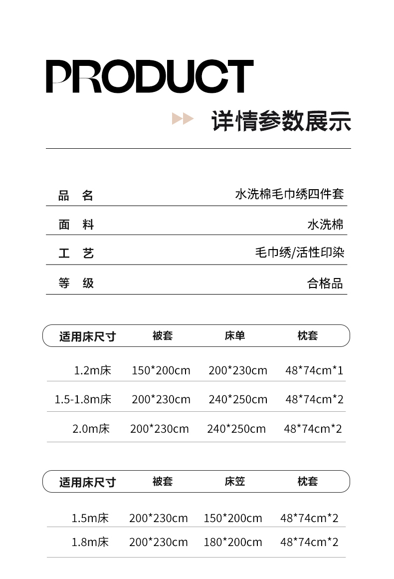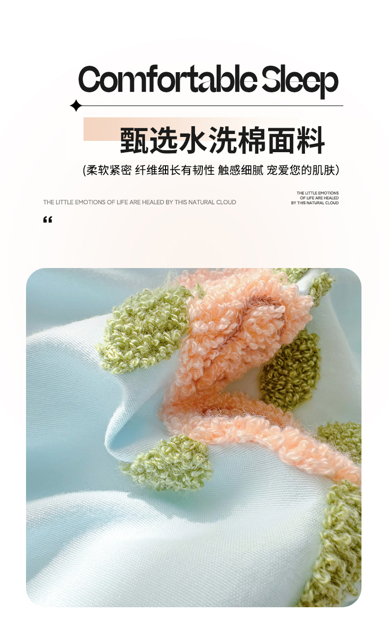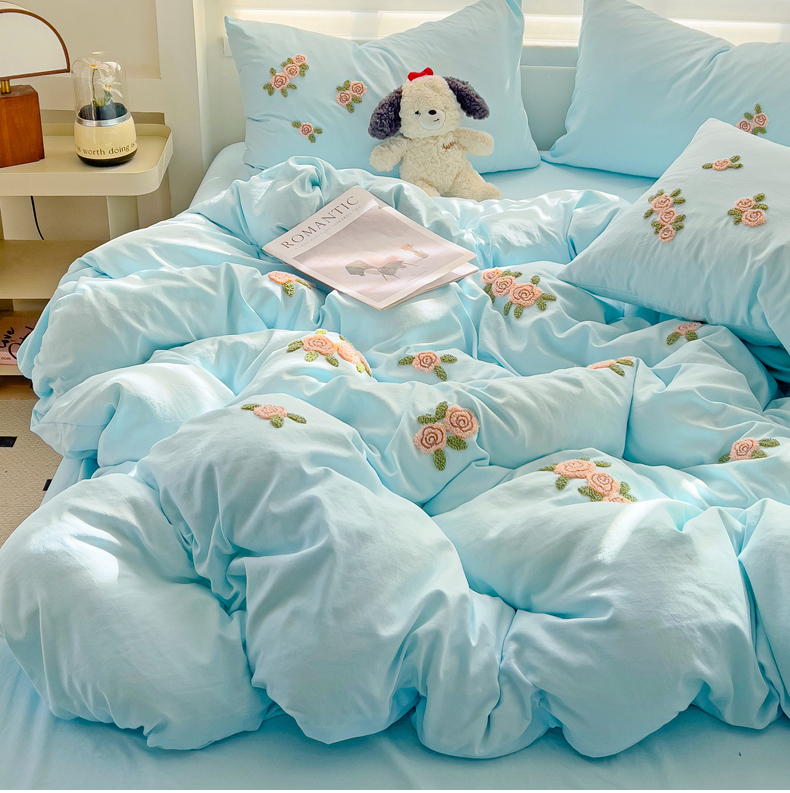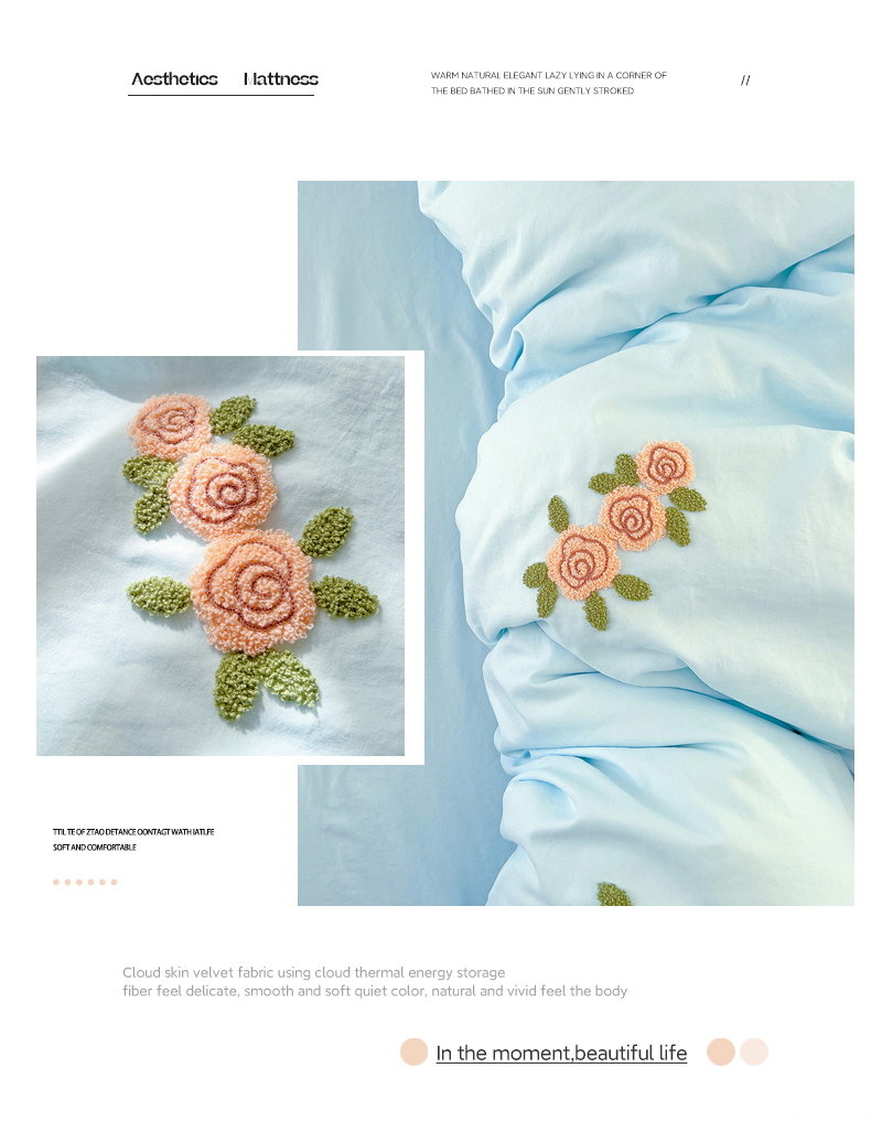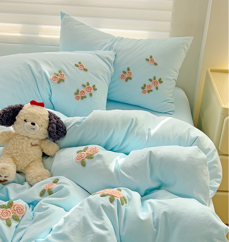 商品名称:你好美丽 2025新款水洗棉毛巾绣花朵花漾四件套 花漾蓝
