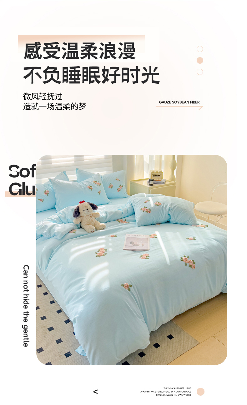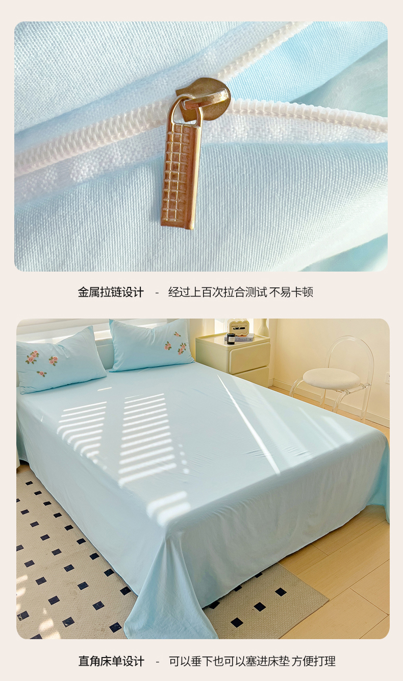 你好美丽 刺绣款200克牛奶绒四件套(含买家秀)花香四溢蓝,花香四溢蓝