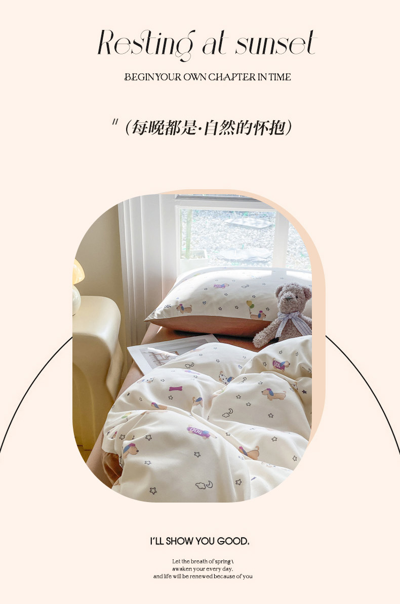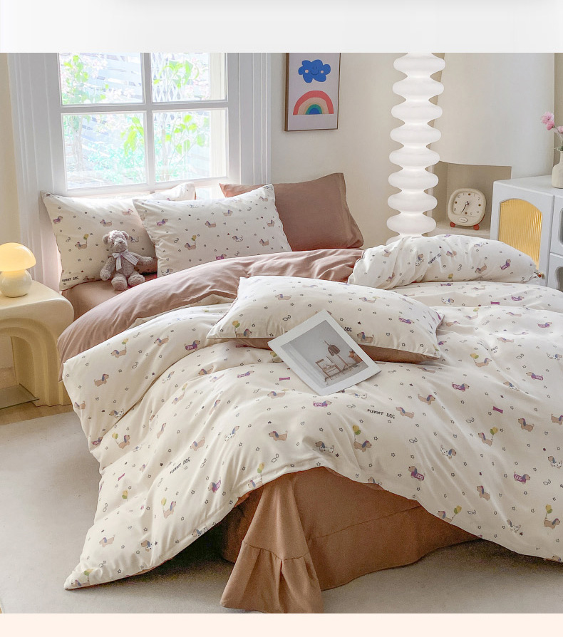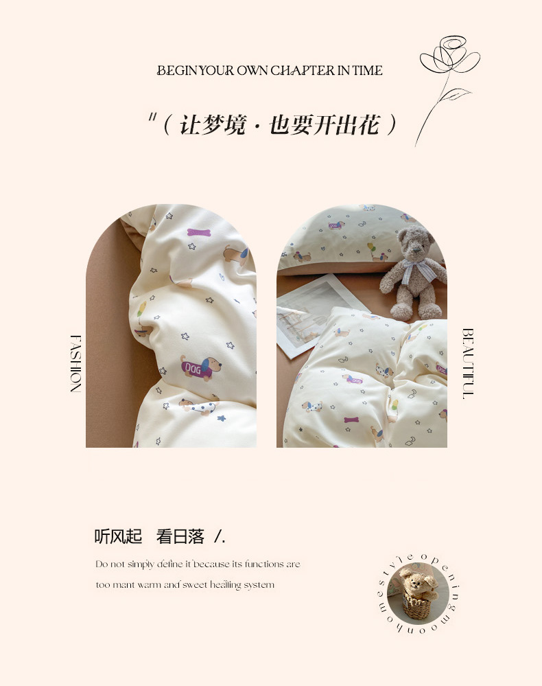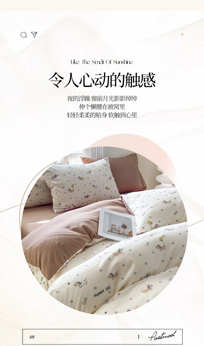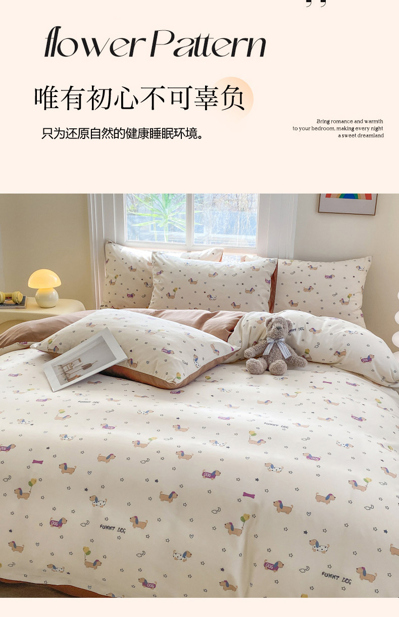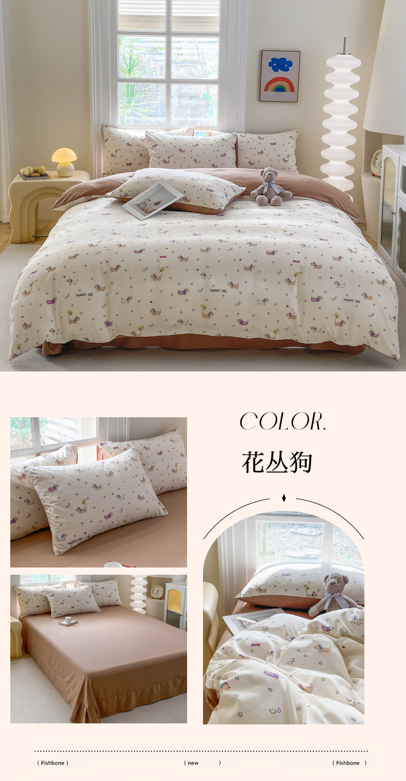 商品名称:富缦庭2025新款A类针织双层纱四件套花丛狗