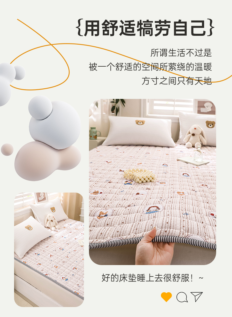 (总)正邦家纺 2025新款泡泡棉软糯夹棉床褥床垫,爱心小格,春光里,繁花,蝴蝶结,萌宠乐园,蜜桃之恋,牡丹花开,夕颜,月光女孩