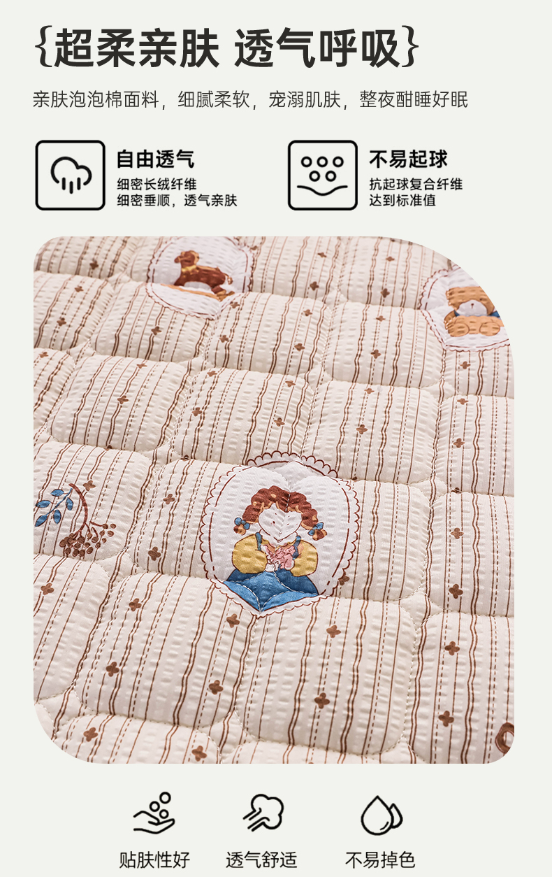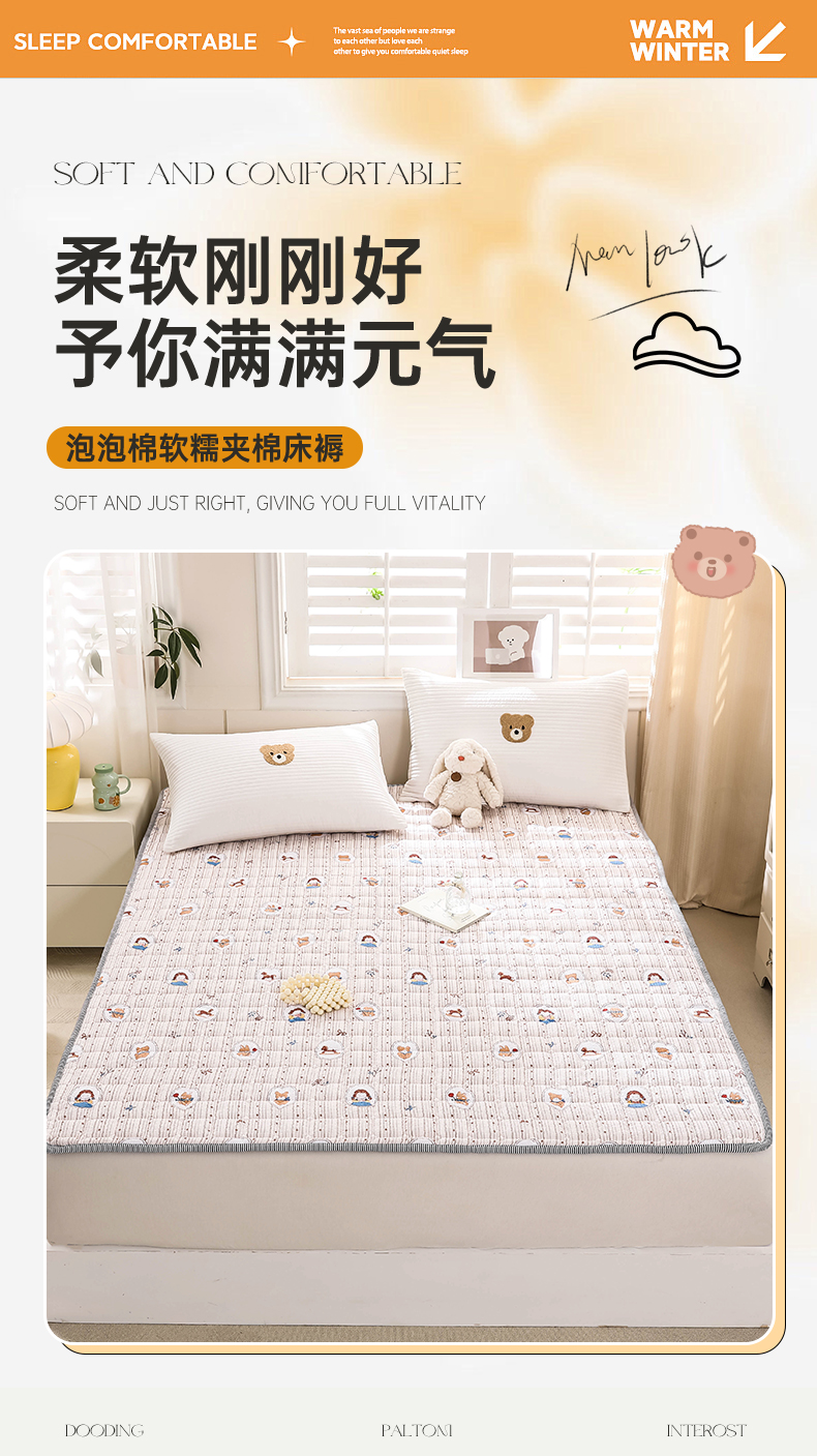正邦家纺 2025新款泡泡棉软糯夹棉床褥床垫 夕颜