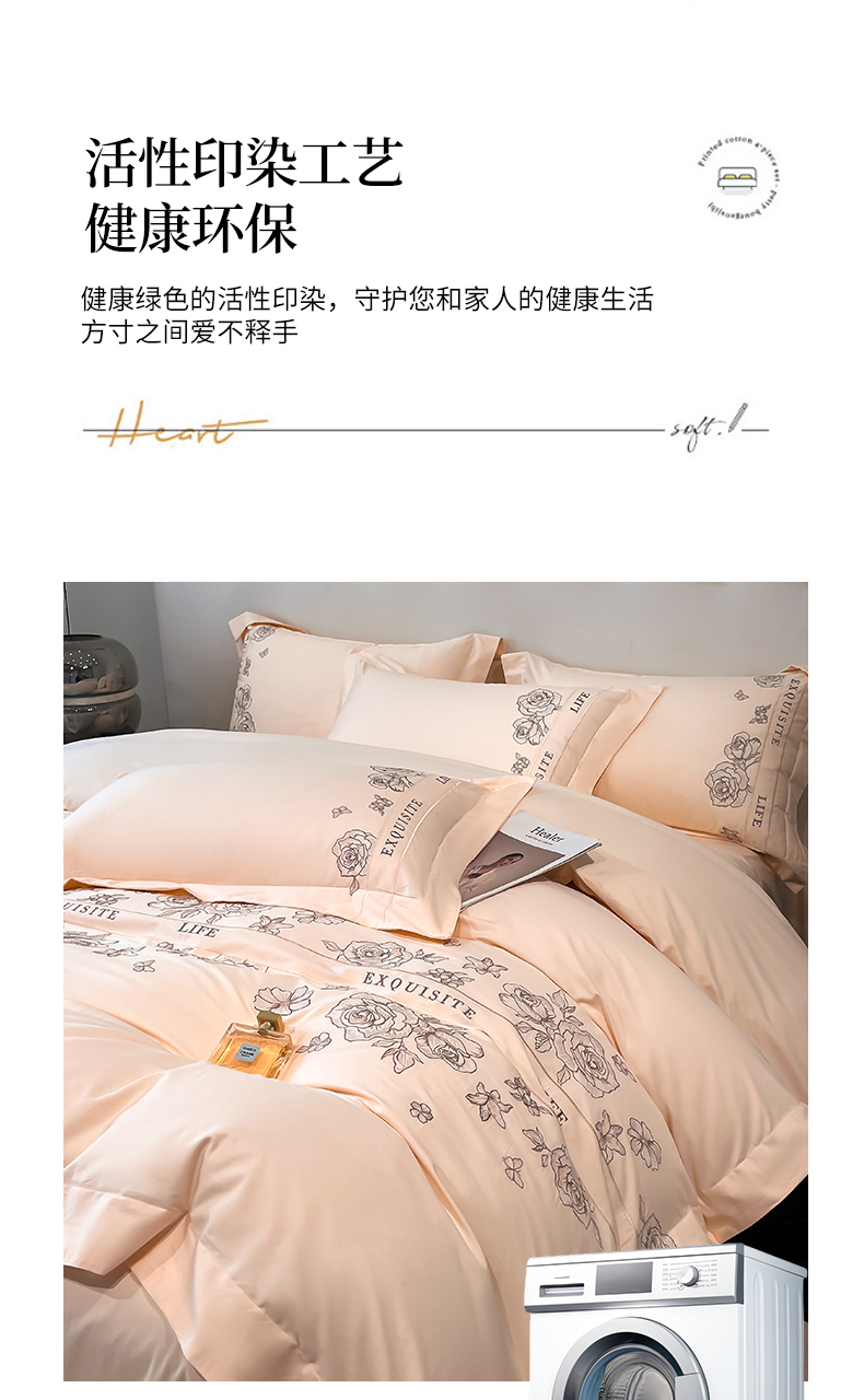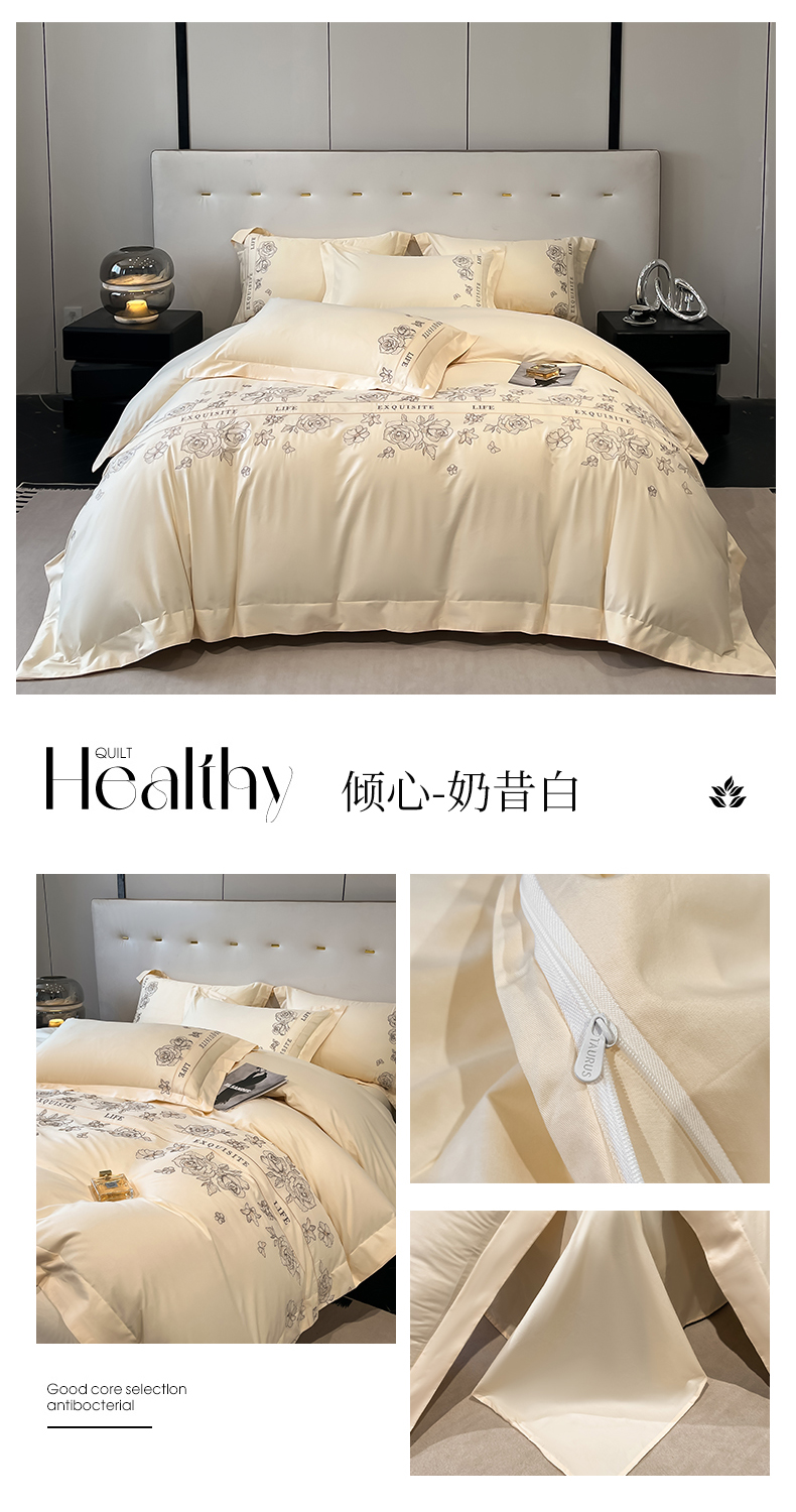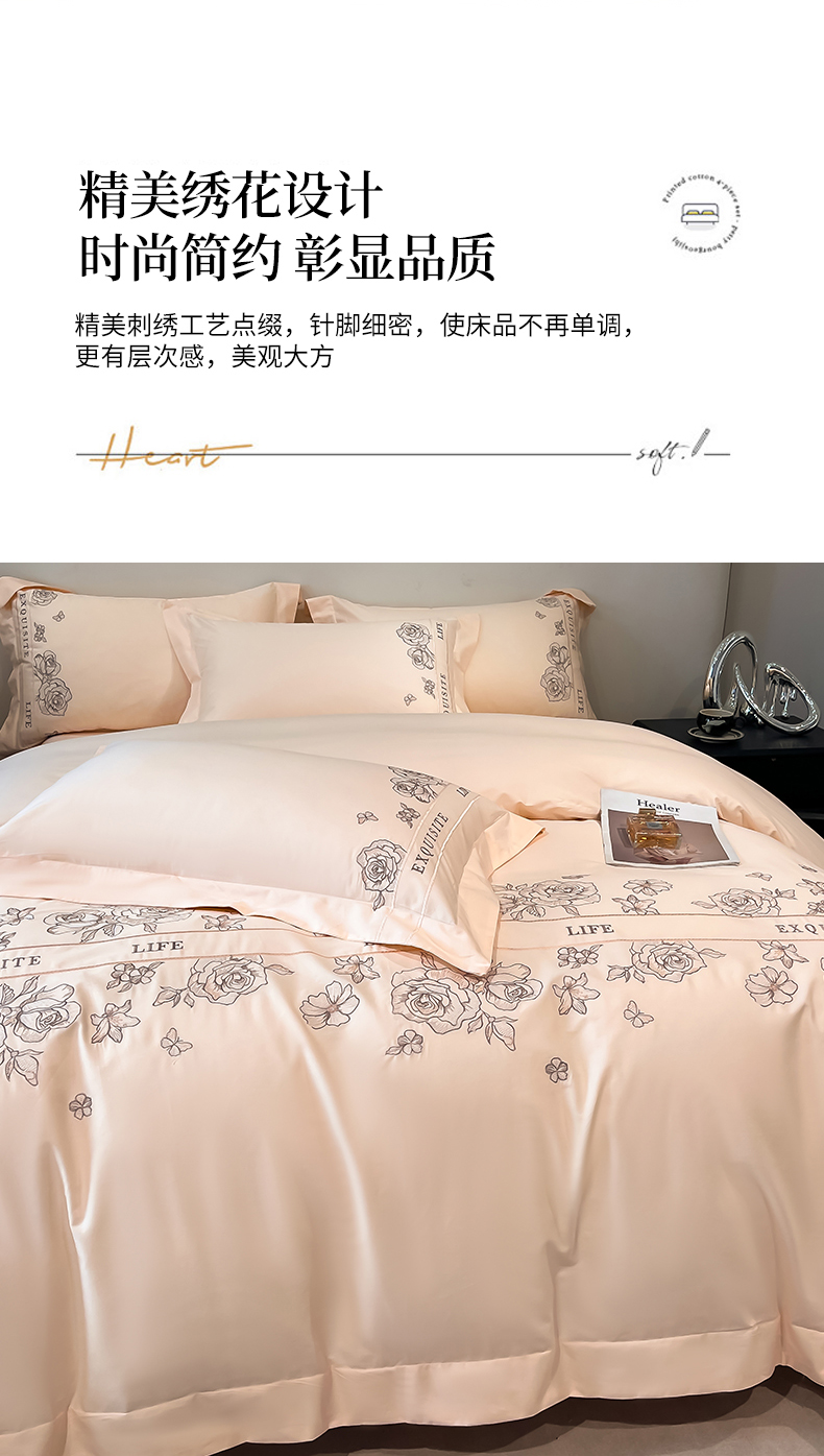 商品名称:(总)金牛座家纺 2025新款长绒棉全棉刺绣四件套-倾心系列(配高档礼盒)