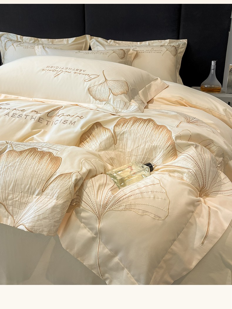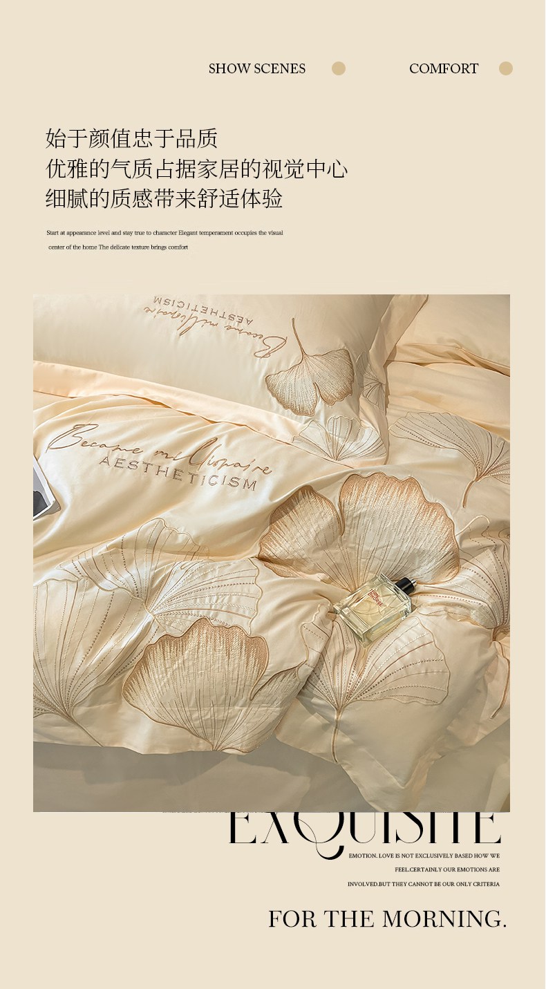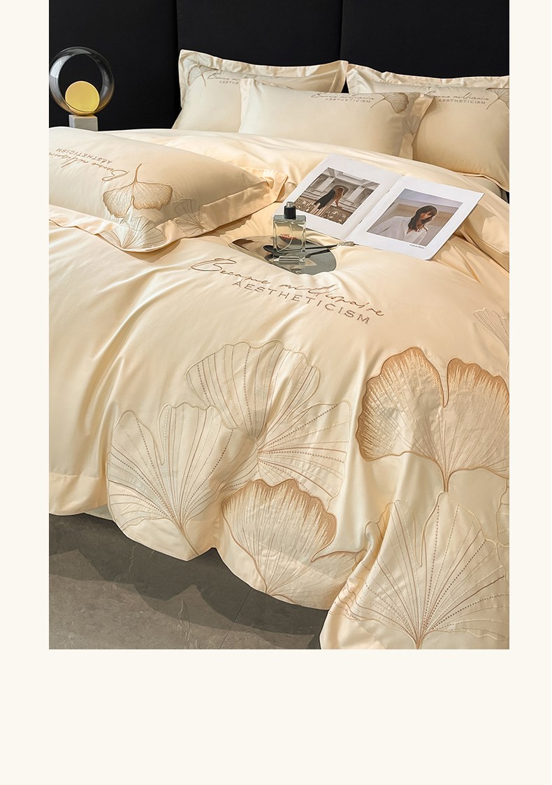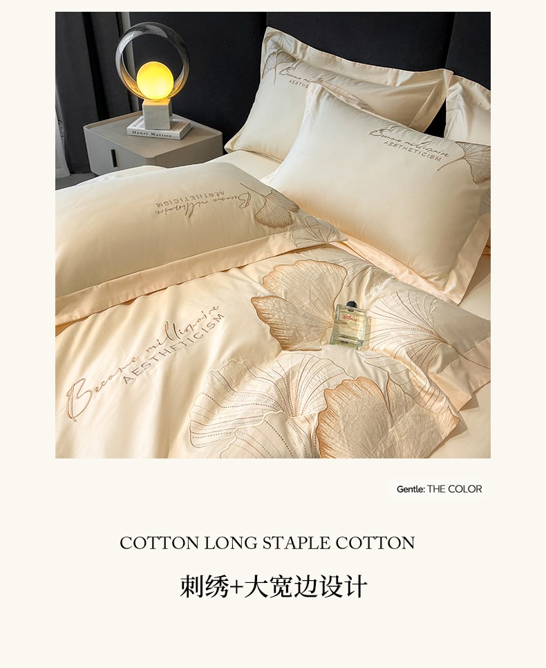 金牛座家纺 2025新款全棉刺绣四件套-三生有杏(配高档礼盒) 三生有杏-奶昔白