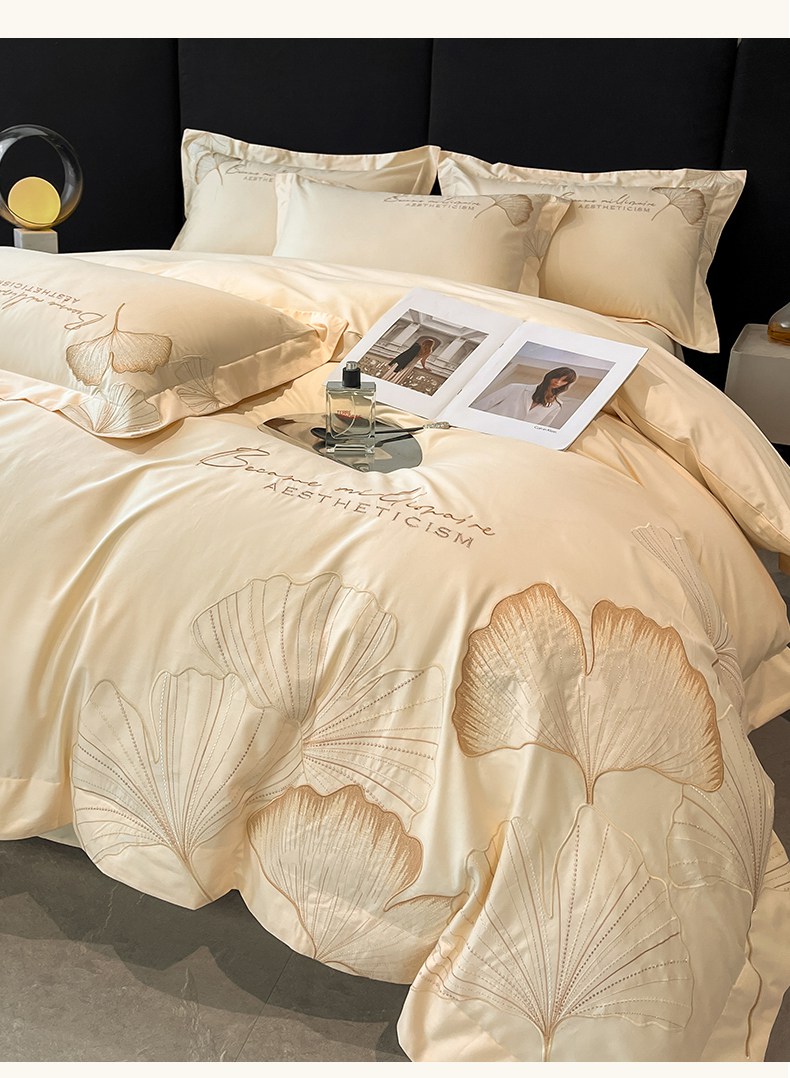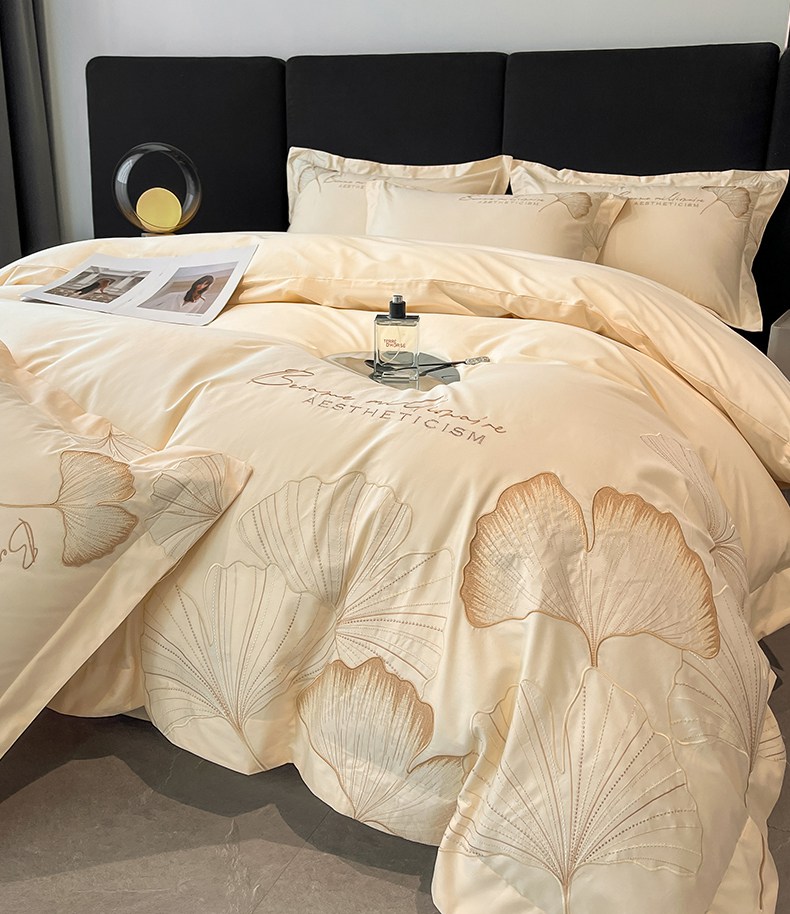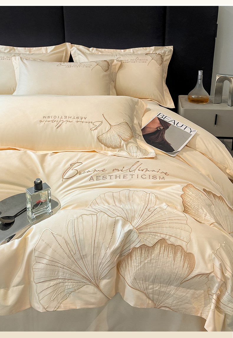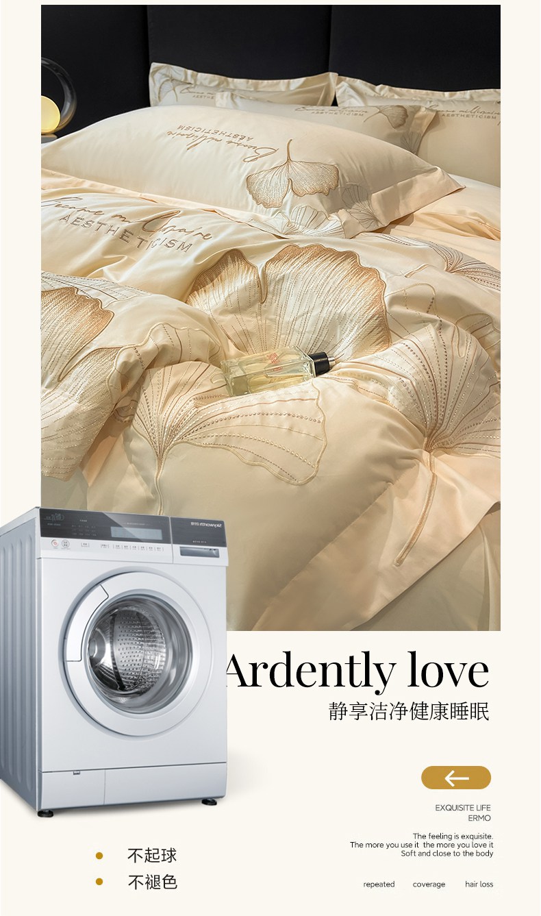金牛座家纺 2025新款全棉刺绣四件套-三生有杏(配高档礼盒) 三生有杏-奶昔白