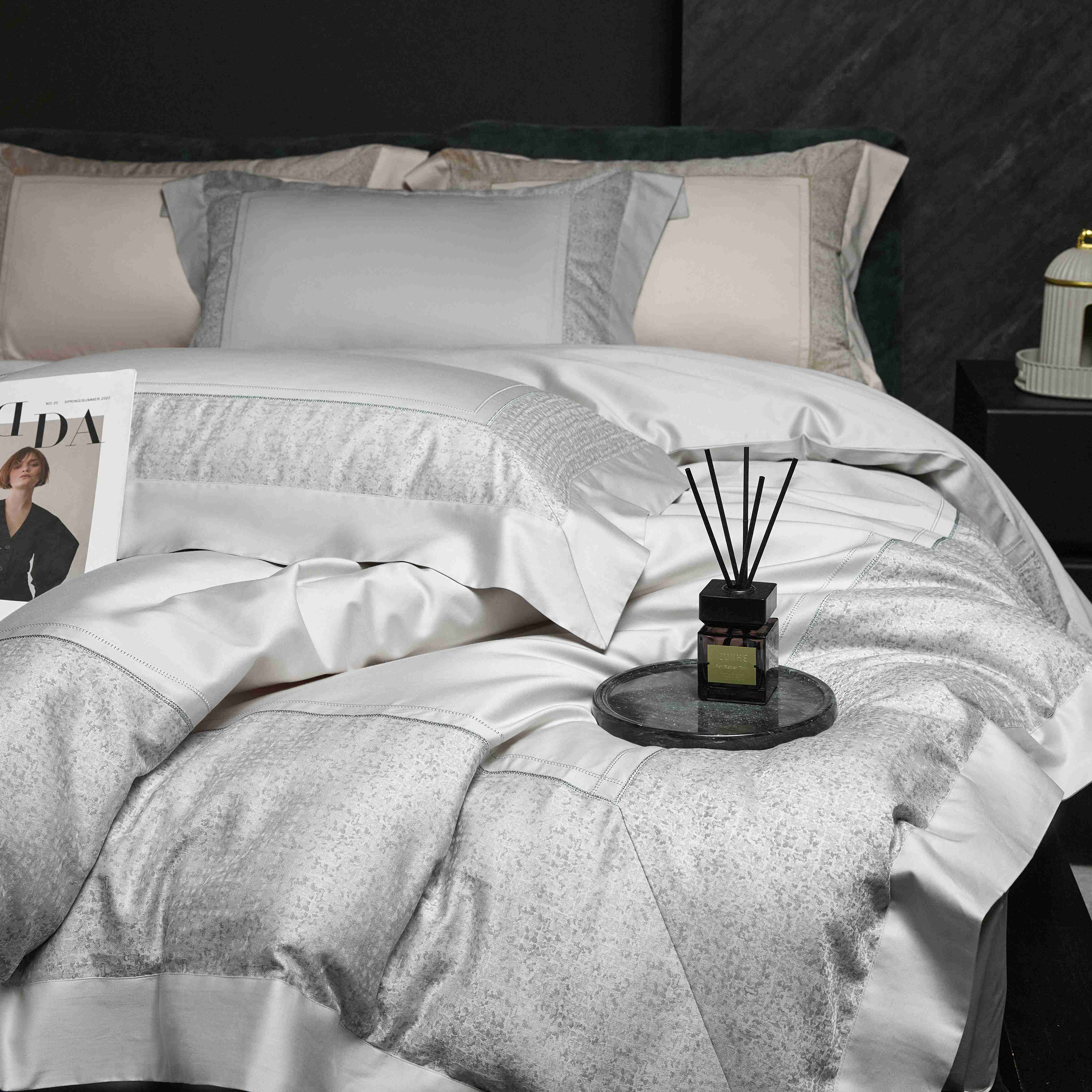 总榻尚家居 2023新款格瑞斯系列100贡缎长绒棉四件套工艺款四件套,格瑞斯紫,格瑞斯白,格瑞斯灰,格瑞斯蓝
