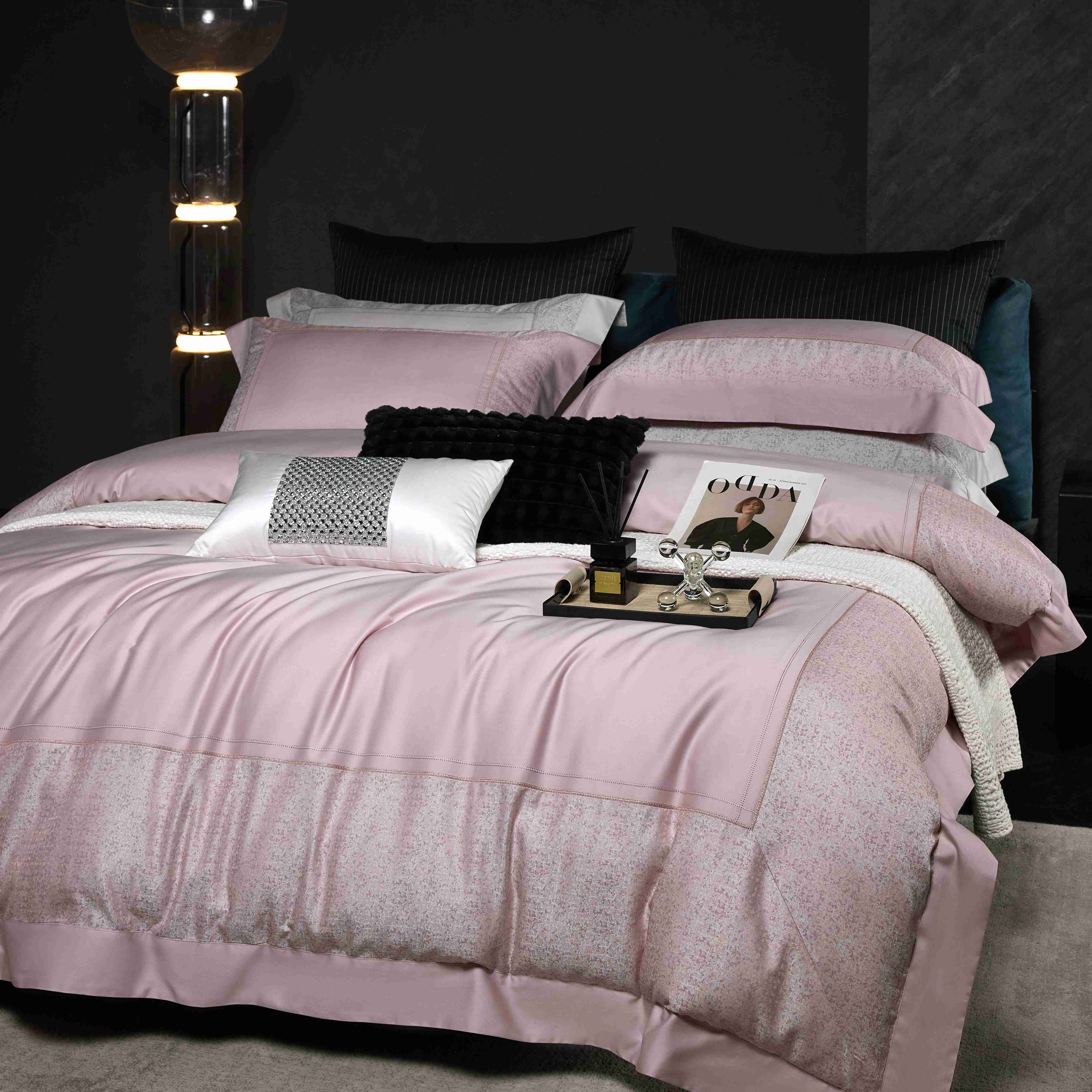 (总)榻尚家居 2023新款纯棉贡缎提花四件套(会员-10),缤兰,烟粉