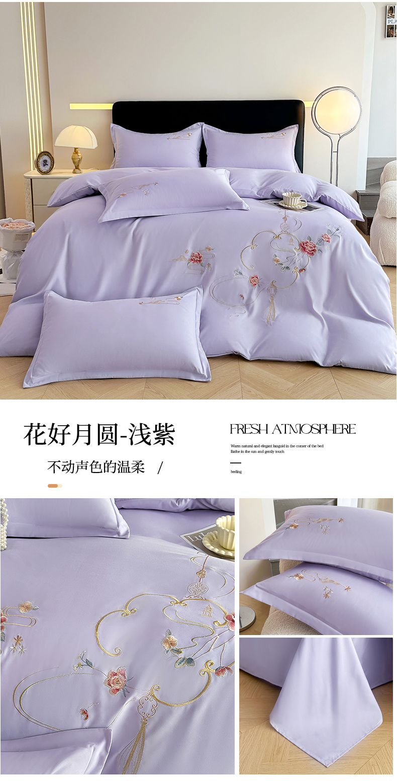 商品名称:帝菲妮 2025新款国潮风高克重超柔水洗棉针织棉糯小棉带质检报告刺绣四件套--花好月圆 花好月圆-浅紫