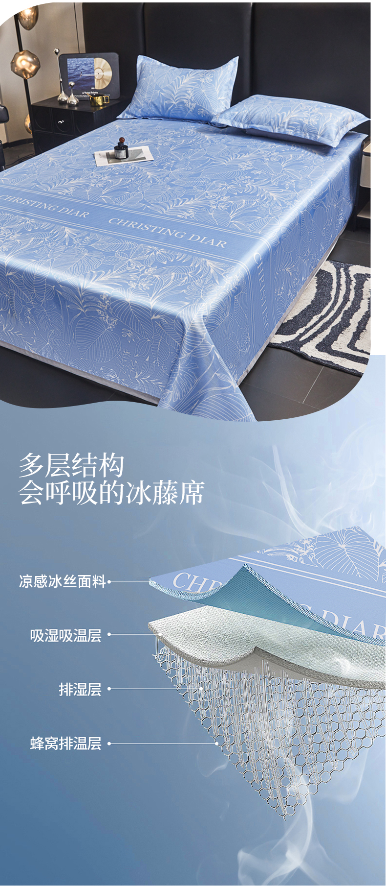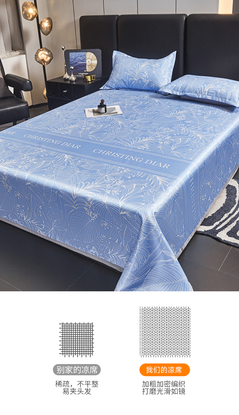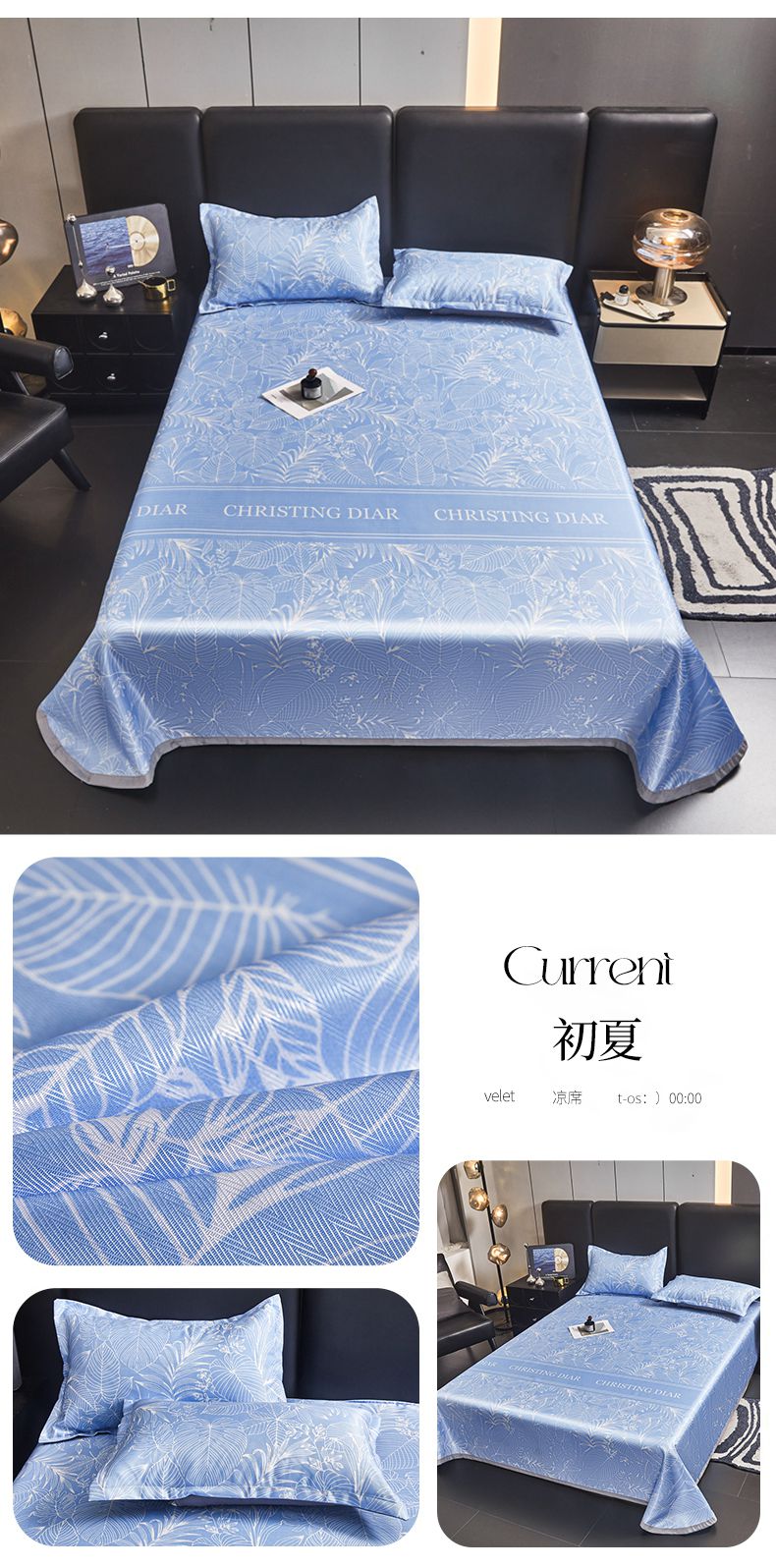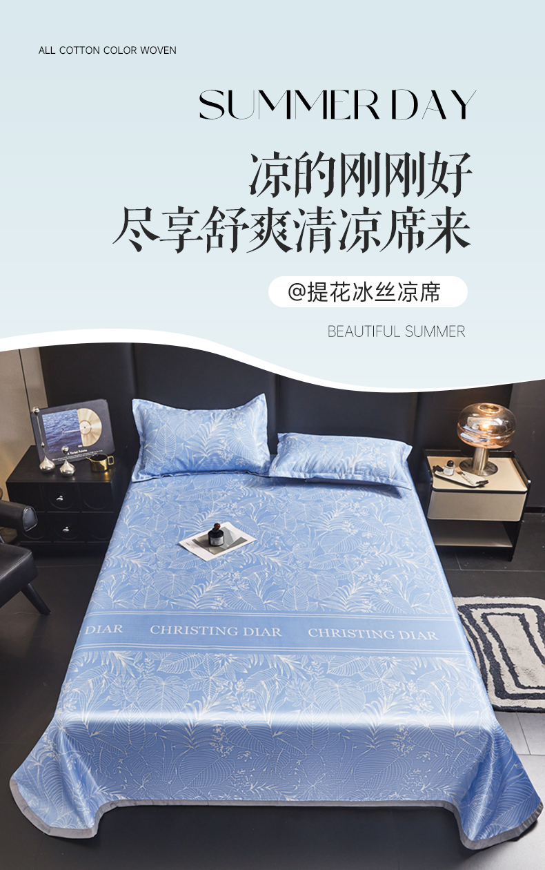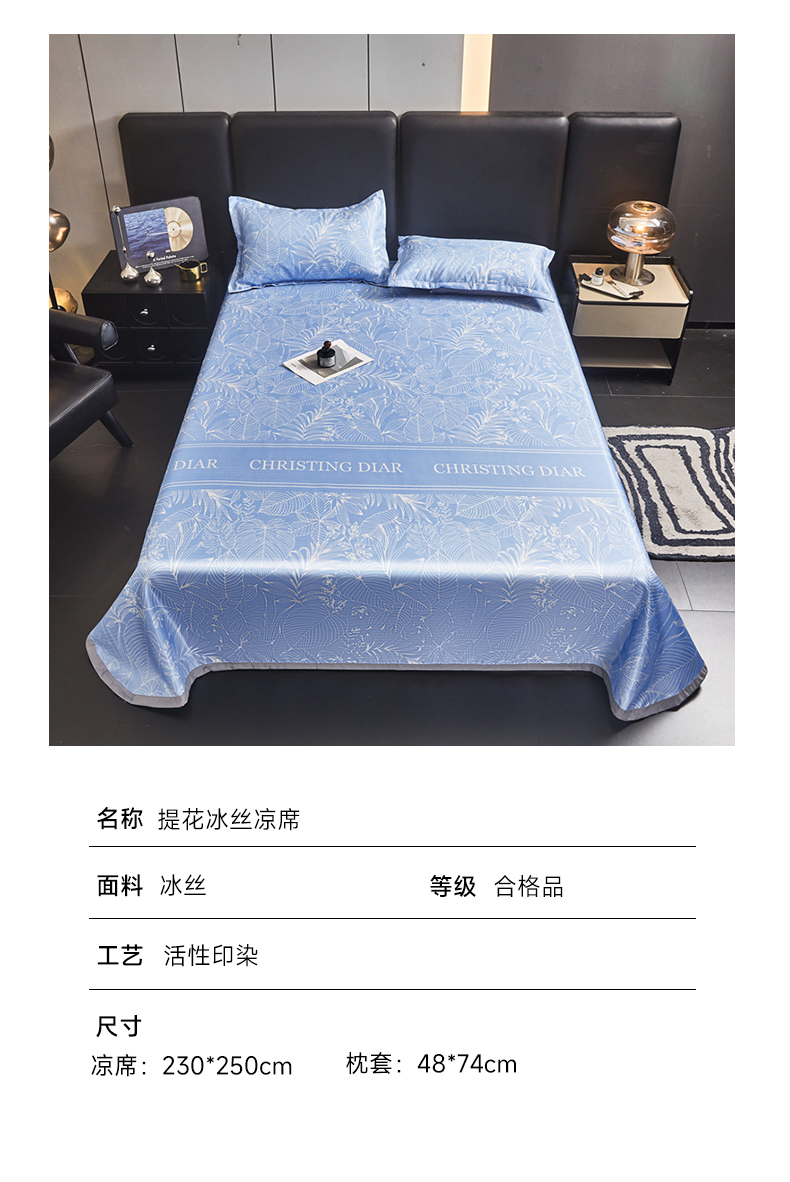 商品名称:悦织湾家纺2025新款斜纹提花冰丝席三件套夏季凉感冰丝席子枕套1对夏凉席床单 初夏