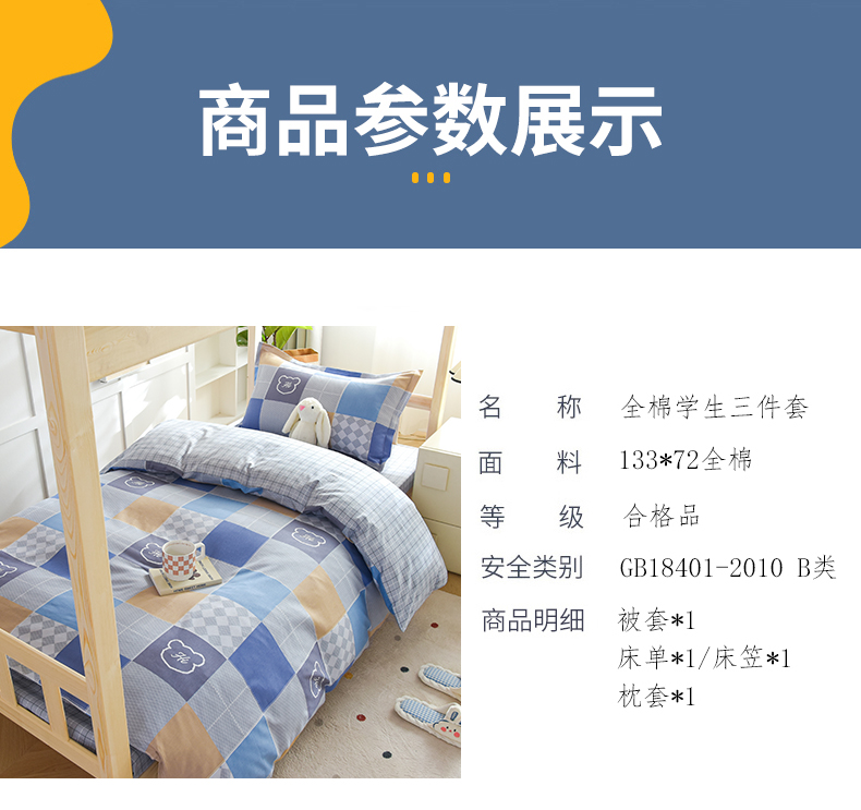 商品名称:鑫宇2025新款13372全棉学生宿舍上下铺三件套床单款床笠款可定制 邦尼熊-蓝