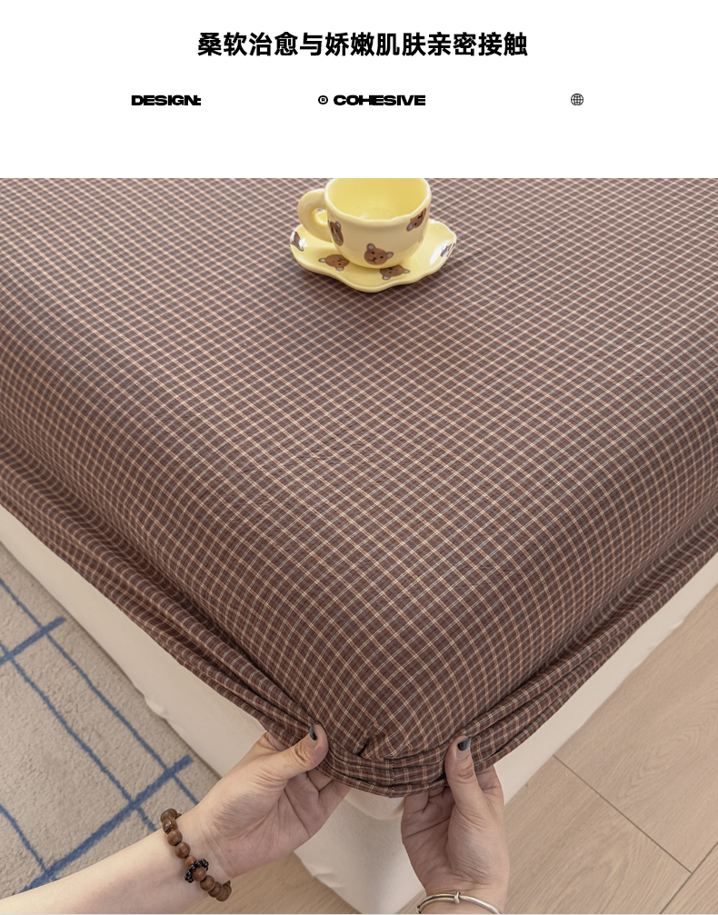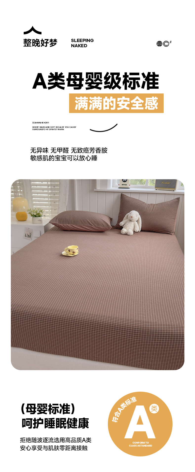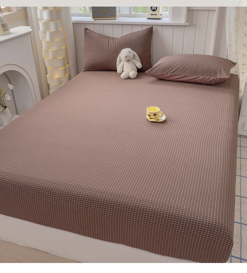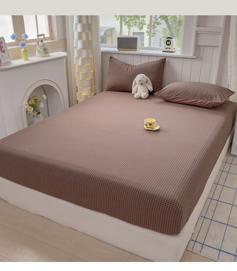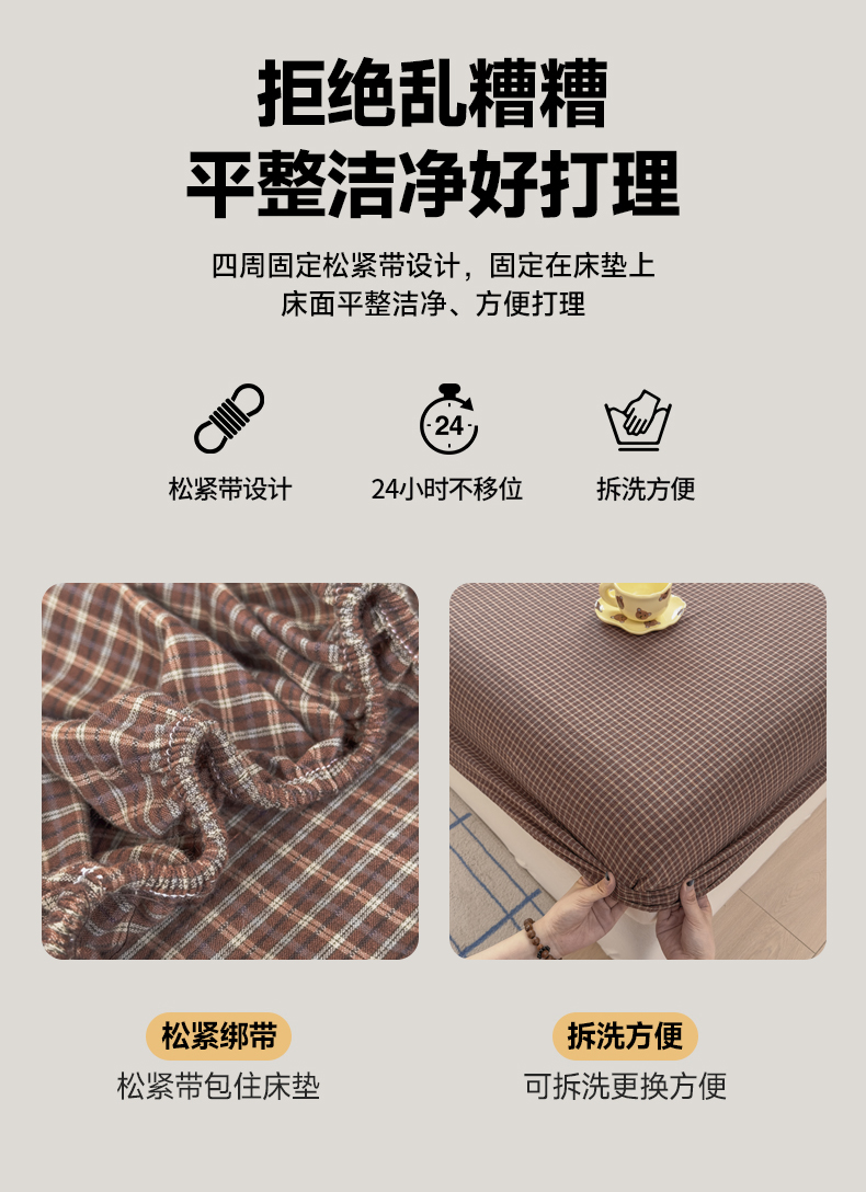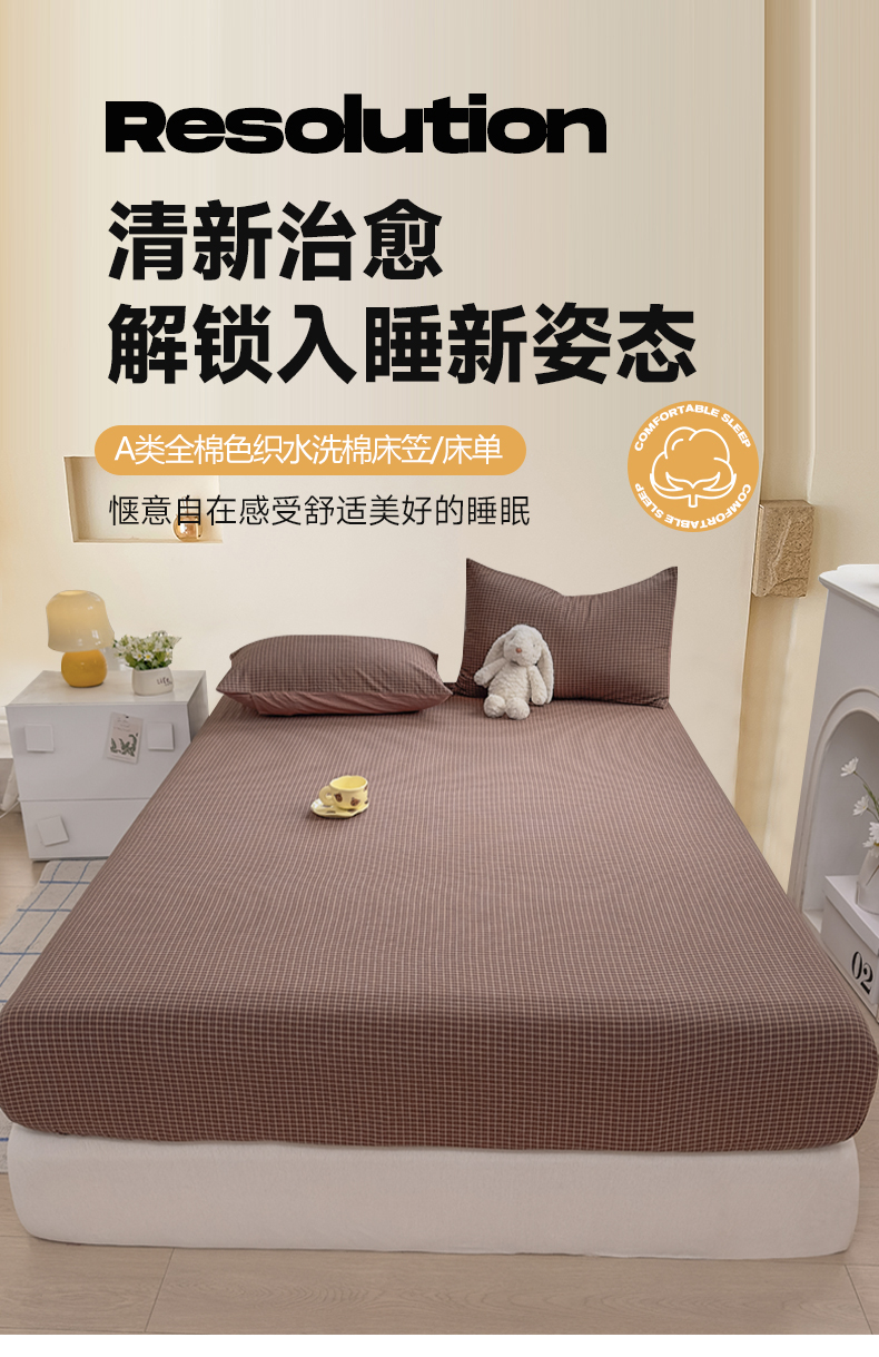 晚依家纺 2025新款A类色织全棉纯棉水洗棉床笠单件纯棉格子纯色学生宿舍定制定做 沐风-焦糖
